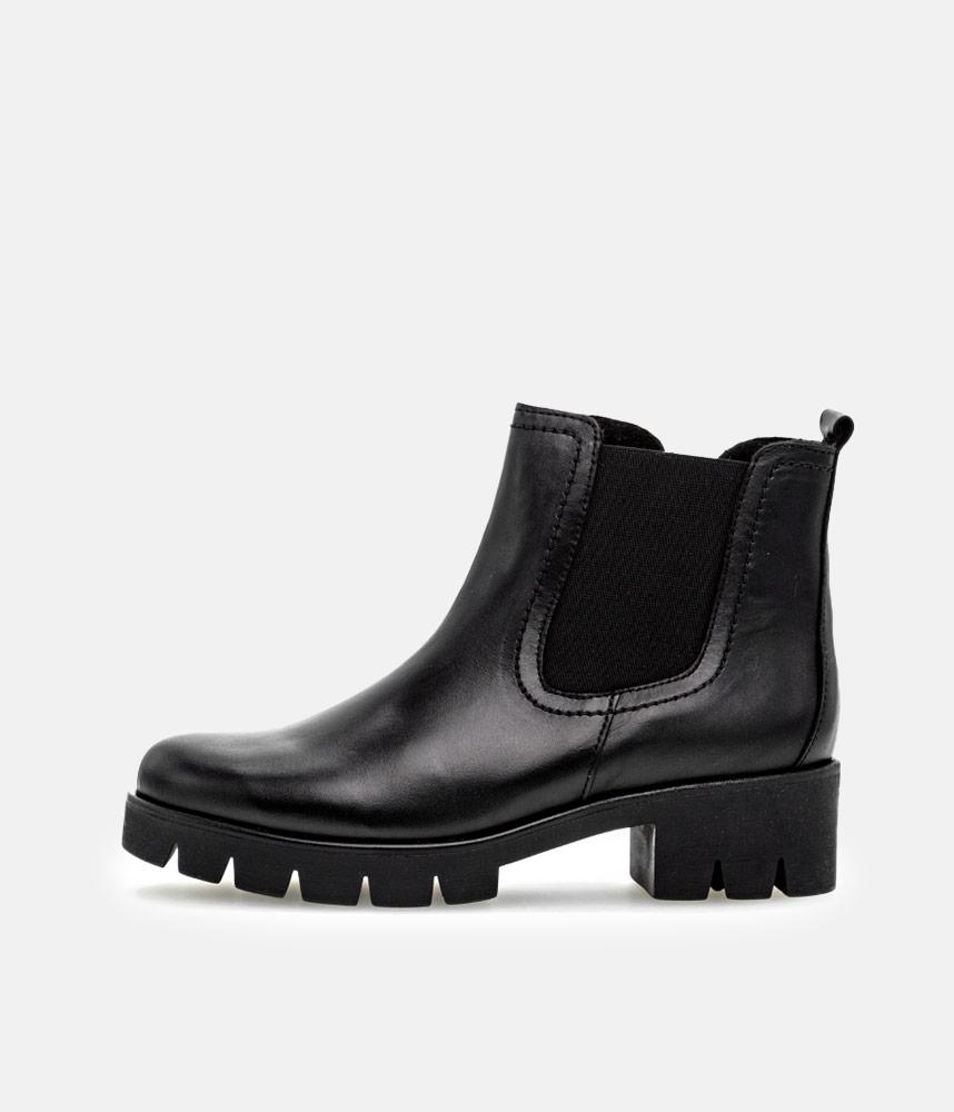 These Gabor Chunky Chelsea style ankle boots crafted from Premium Leather are perfect for pulling on in a hurry to add a fashionable touch to any outfit. Featuring a stretch panel for a snug fit and a side zip for easy on and off. A chunky cleated sole adds a fashionable contrast while also adding additional grip and traction.