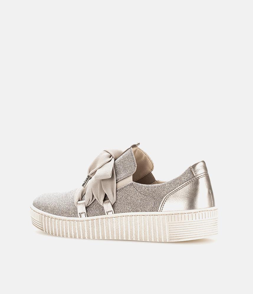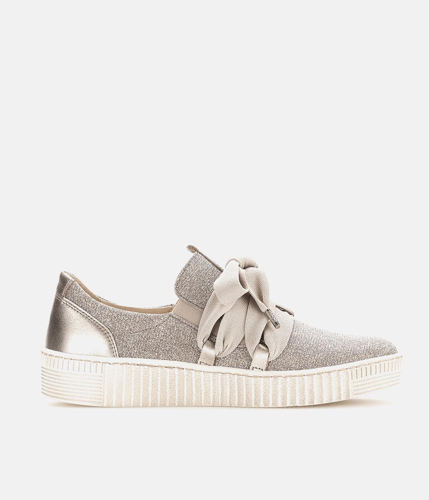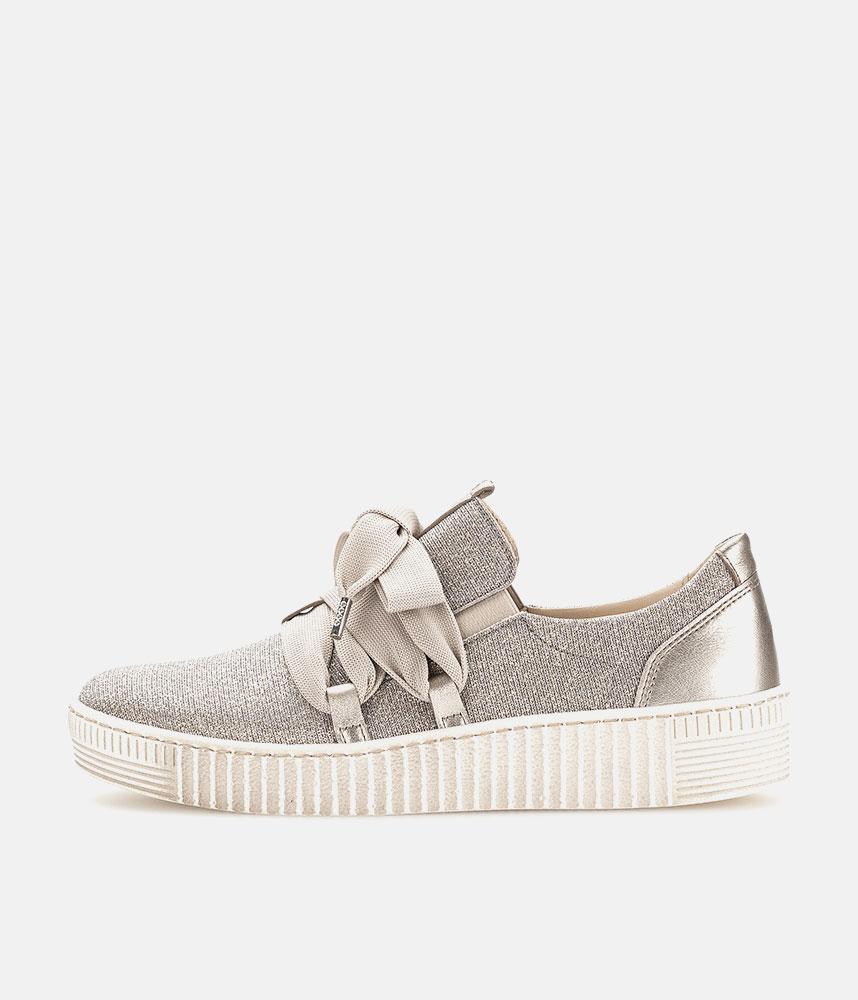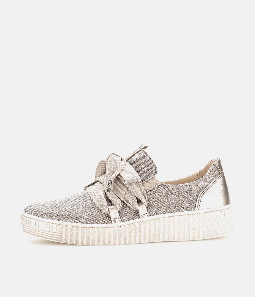 A Stylish Rose Gold Slip on Style from Gabor with a chunky outsole featuring stylised grooving for a textured finish. A fantastic versatile style to have in your wardrobe that can be worn with a wide variety of looks and outfits. The trainers are lined with smooth leather and textile that cushions feet for a comfortable fit.