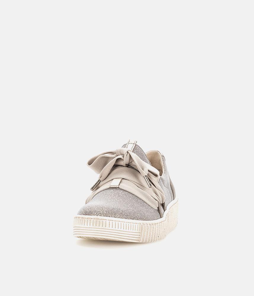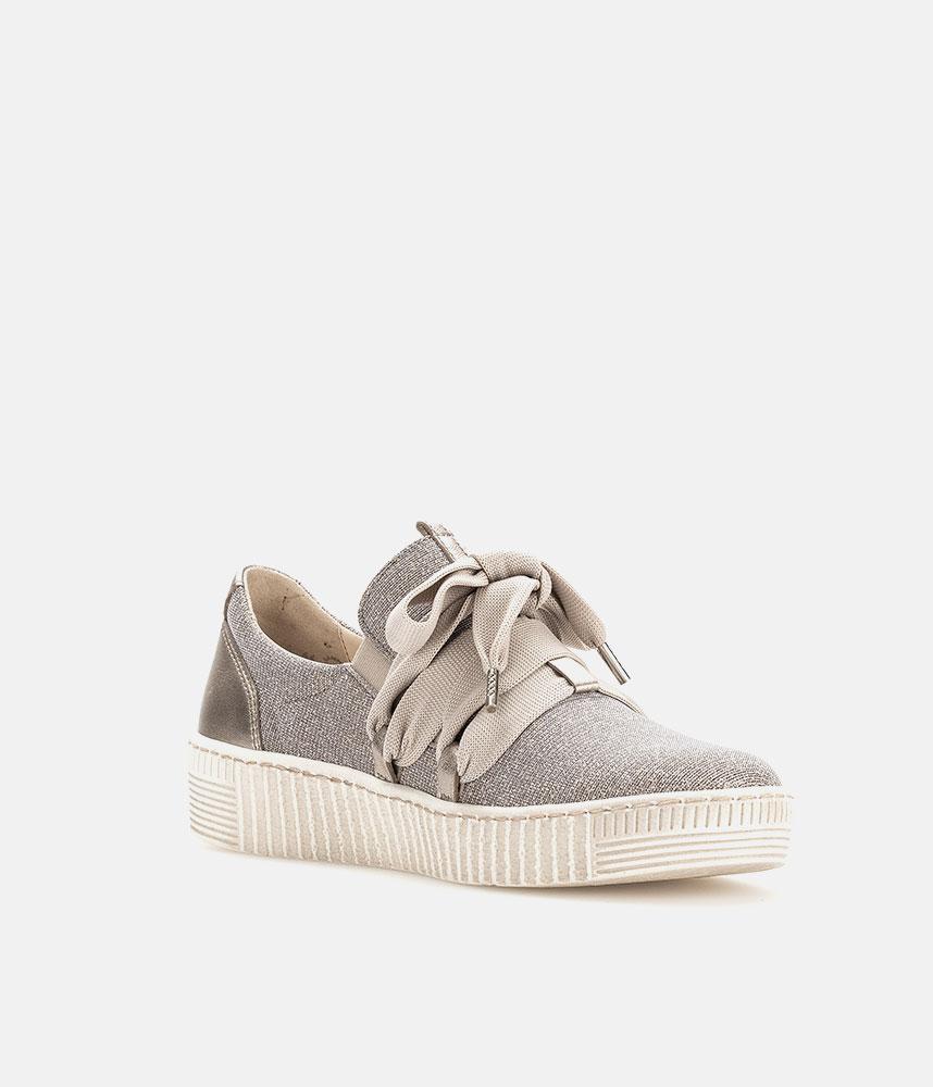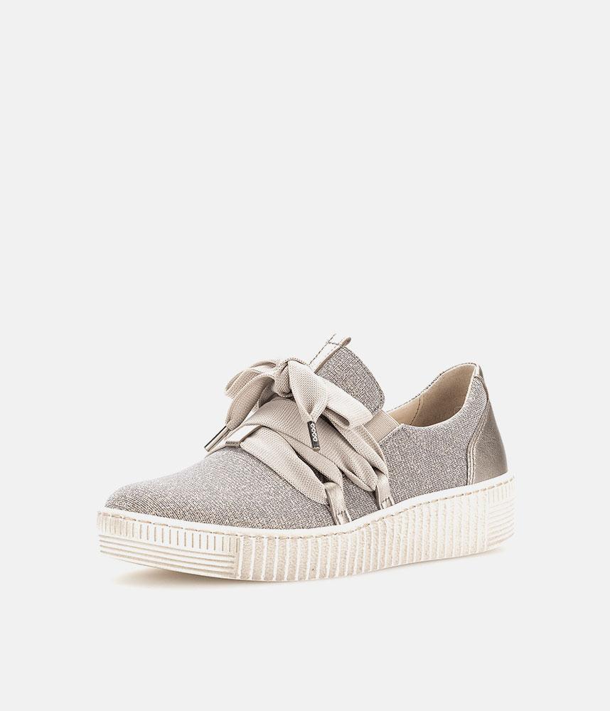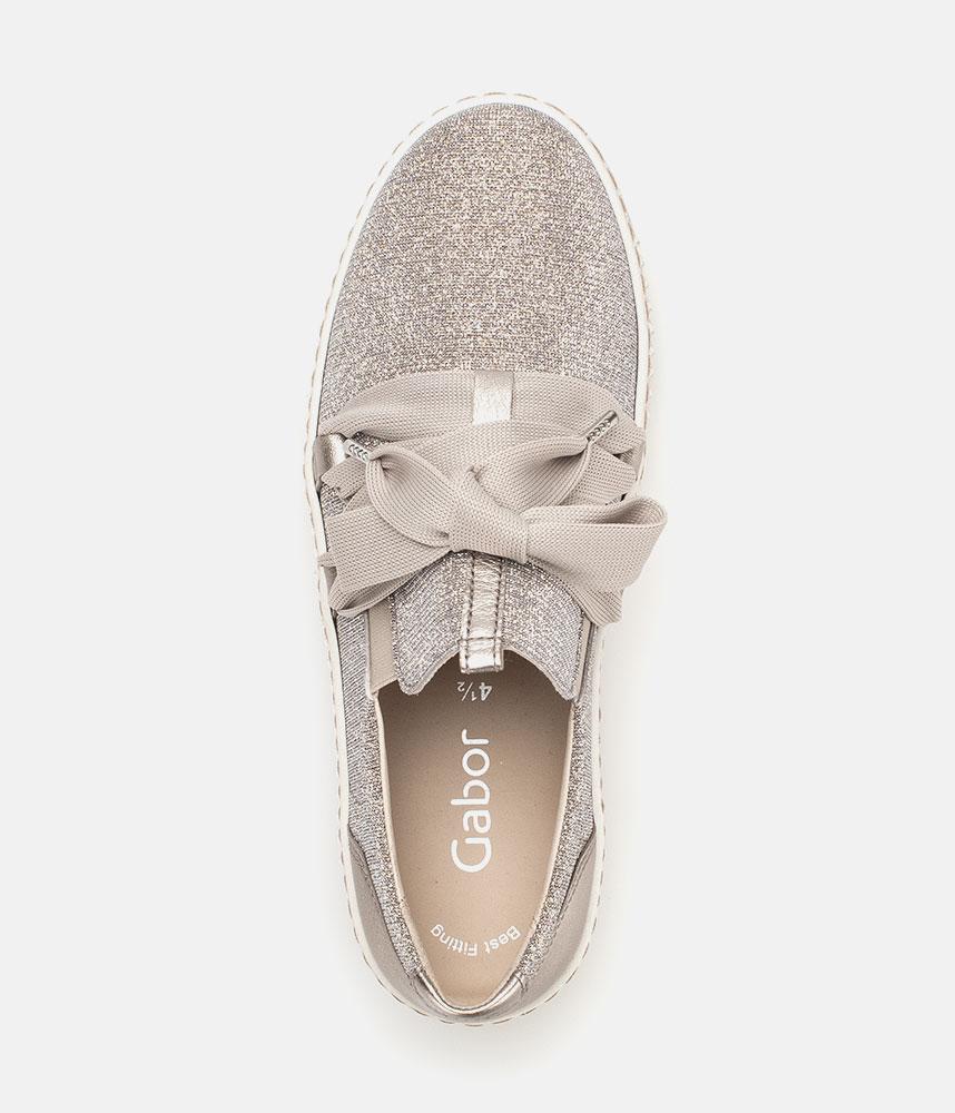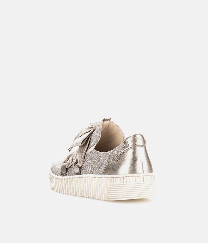 A Stylish Rose Gold Slip on Style from Gabor with a chunky outsole featuring stylised grooving for a textured finish. A fantastic versatile style to have in your wardrobe that can be worn with a wide variety of looks and outfits. The trainers are lined with smooth leather and textile that cushions feet for a comfortable fit.