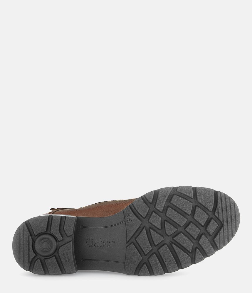 This is a contemporary chunky combat style ankle boot from Gabor with a smooth leather finish and contrasting Gold zip and detailing. Featuring Gabor’s Best Fitting technology feature; a broadened insole and widened tread area delivering an increased step surface for the ball area of the foot. The durable man-made sole ensures maximum traction and the the side zip ensures easy on and off.