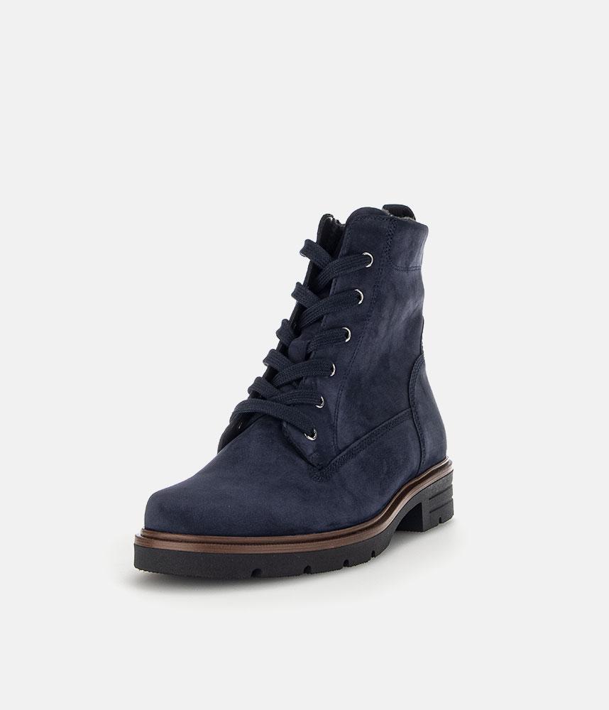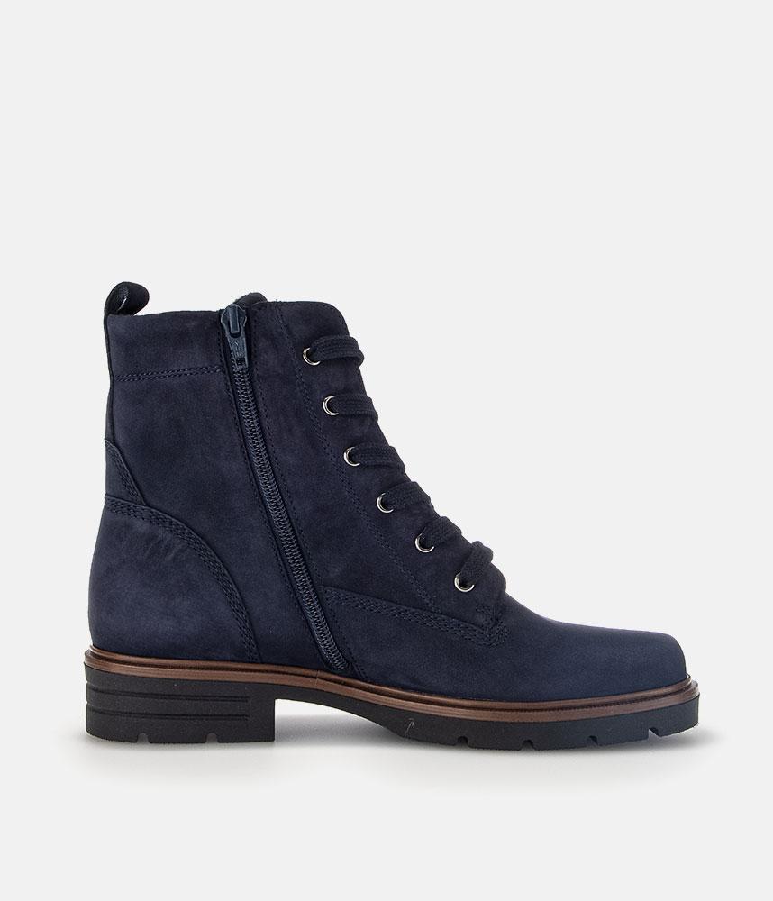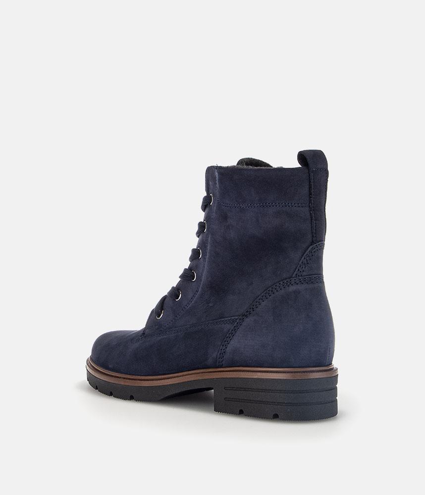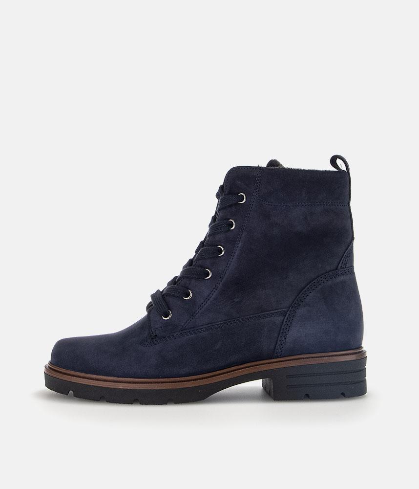These Gabor Lace Up Ankle Boots are a fashionable style, yet practical for everyday wear. A soft Navy Nubuck leather upper sits on a chunky trendy black sole. The side zip and laces makes this style easy to put on and take off while also allowing for an adjustabe fit. Gabor's Best Fitting technology feature a broadened insole and widened tread area, delivering an increased step surface for the ball area of the foot.