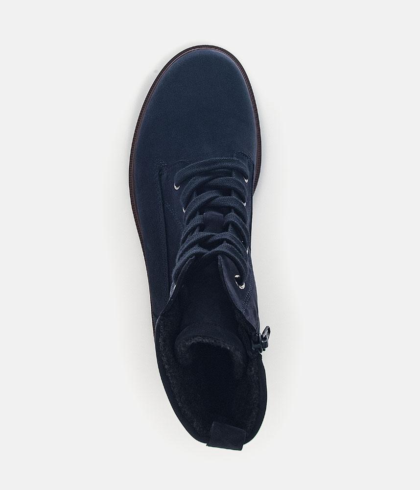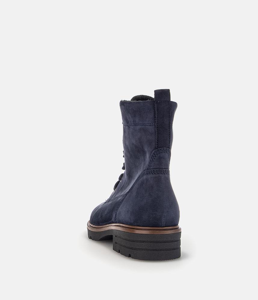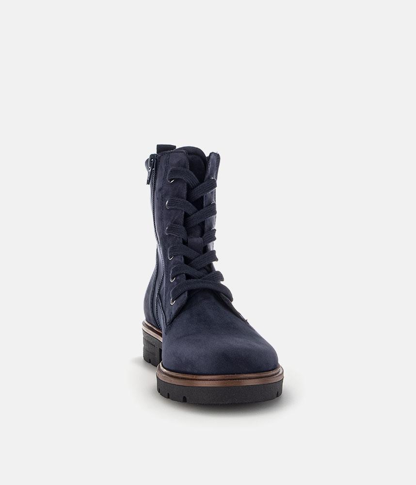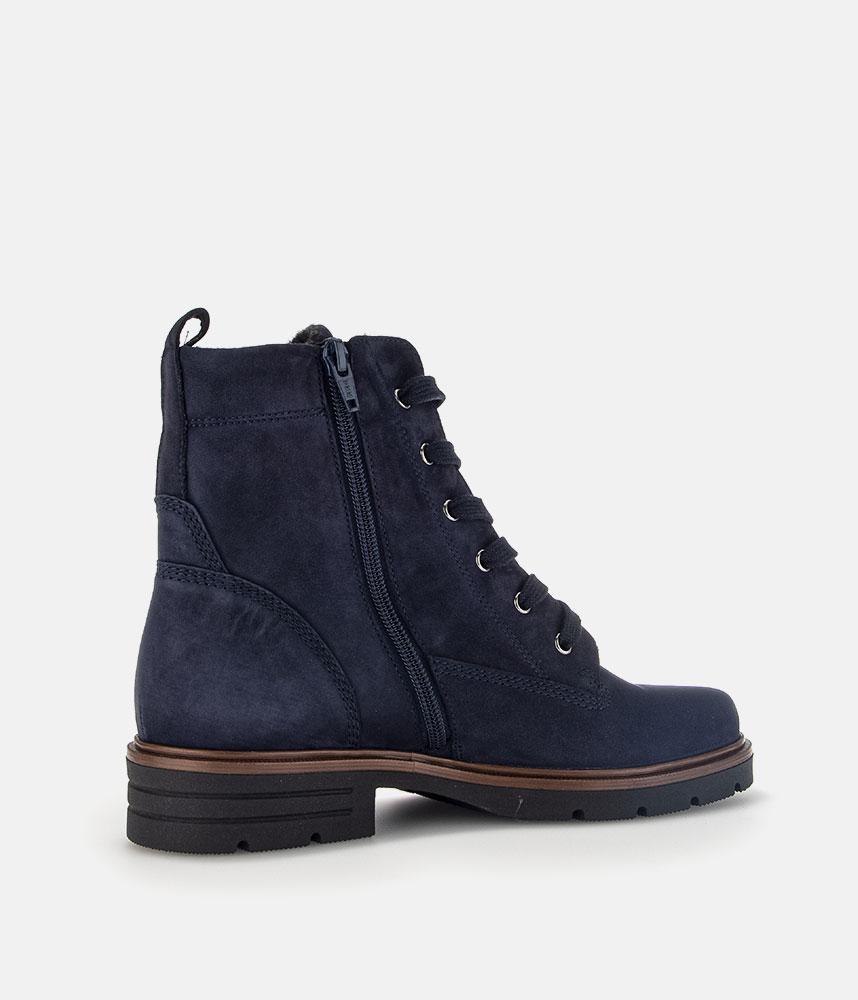 These Gabor Lace Up Ankle Boots are a fashionable style, yet practical for everyday wear. A soft Navy Nubuck leather upper sits on a chunky trendy black sole. The side zip and laces makes this style easy to put on and take off while also allowing for an adjustabe fit. Gabor's Best Fitting technology feature a broadened insole and widened tread area, delivering an increased step surface for the ball area of the foot.