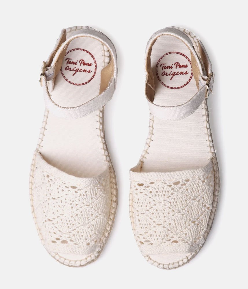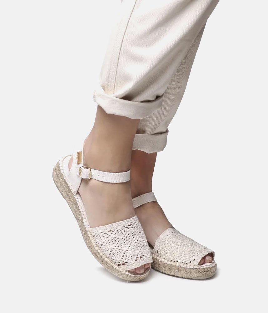 These Beautiful Toni Pons' traditional espadrilles have been crafted in a distinctive style that merges the handcrafted detail of macramé with the classic comfort and practicality of the abarca sandal. Its vegan construction and stylish design make it a unique footwear option.