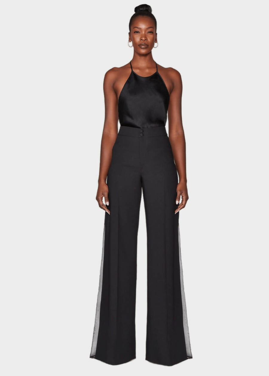 The Jennifer Pant is a true showstopper. Featuring a sheer side panel, high waist, and a zip fly, this pant is sure to turn heads wherever you go.