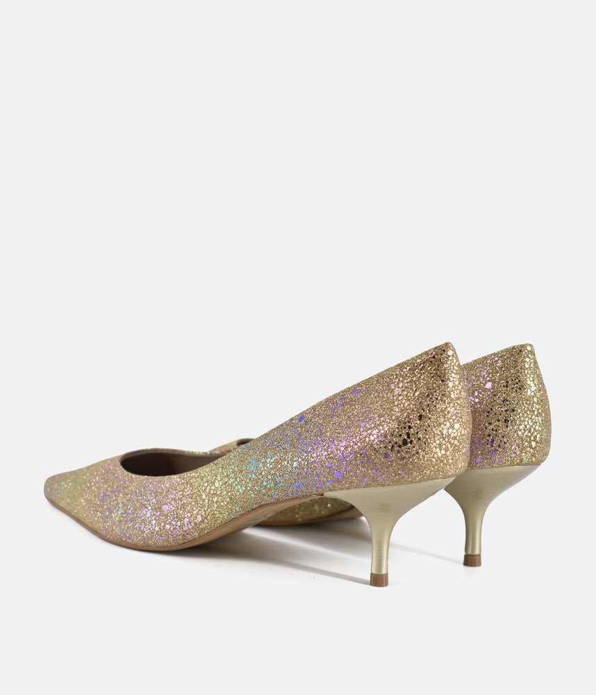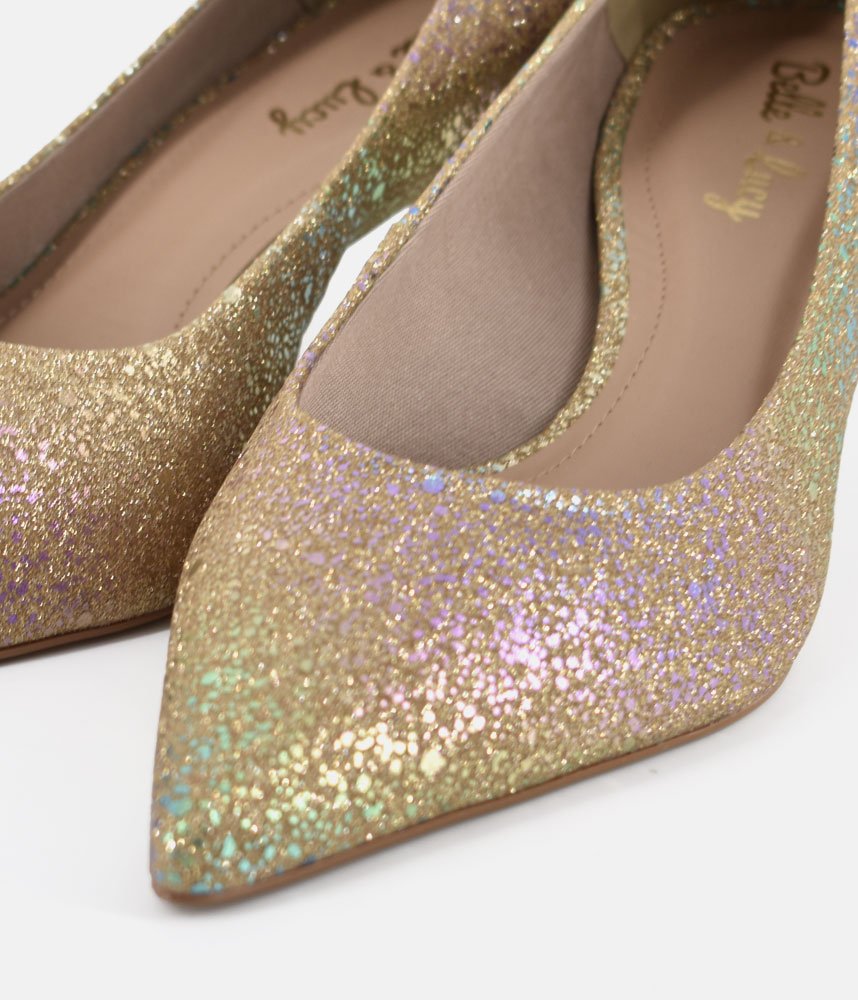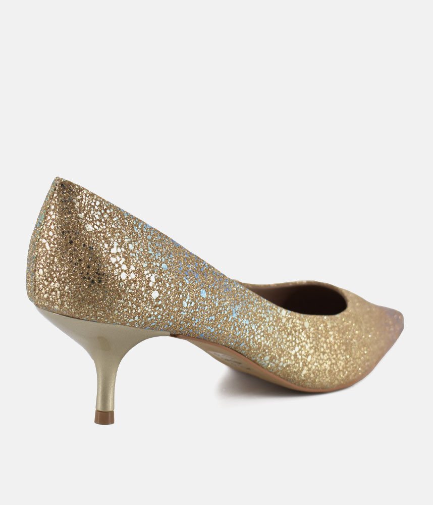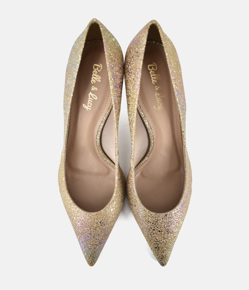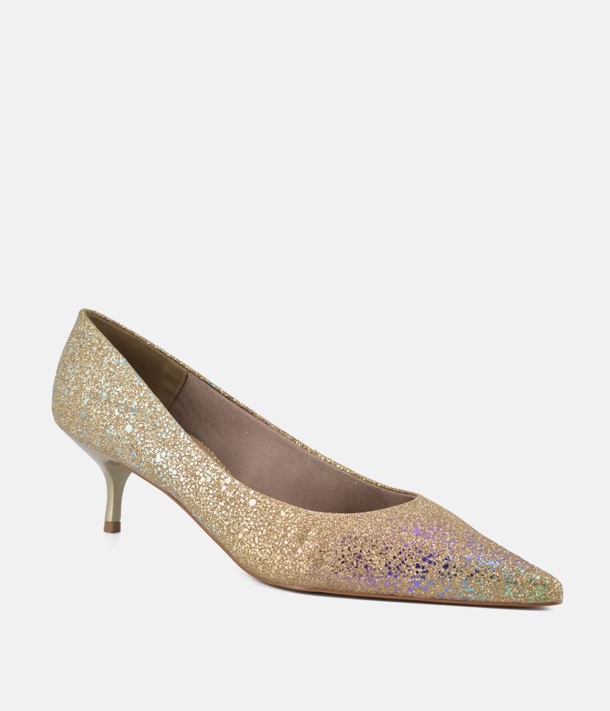 Get ready to dazzle with these enchanting Gold heels! Perfect for adding a touch of fairy-tale sparkle to any outfit, these pumps are designed to make you feel like the belle of the ball. The shimmering finish catches every light, while the elegant pointed toe and comfortable kitten heel offer both sophistication and ease of wear. Whether it's a wedding, a party, or just a night out where you want to shine, these heels are your ticket to unforgettable glamour.