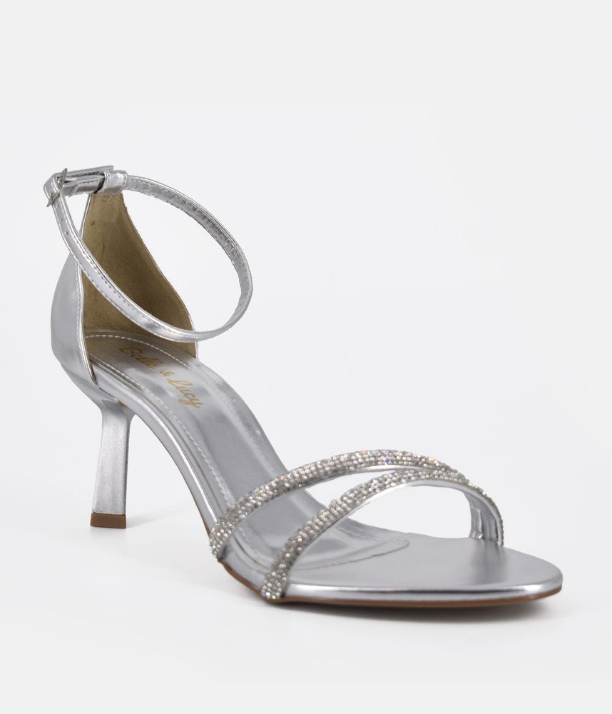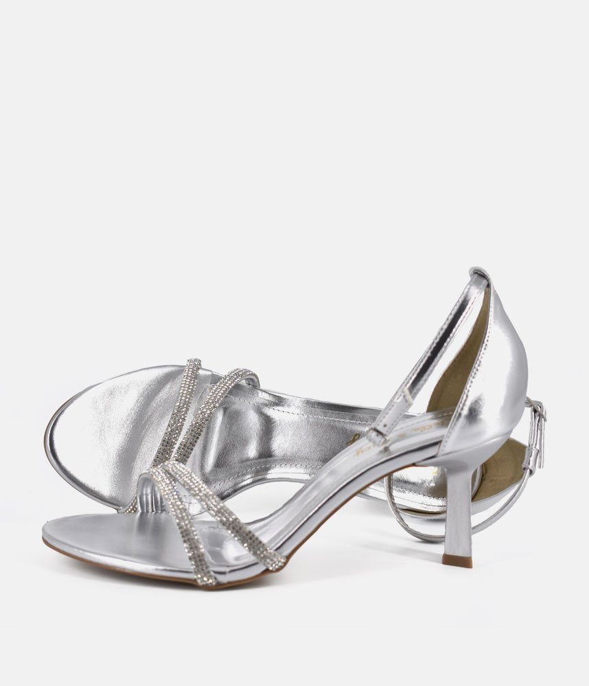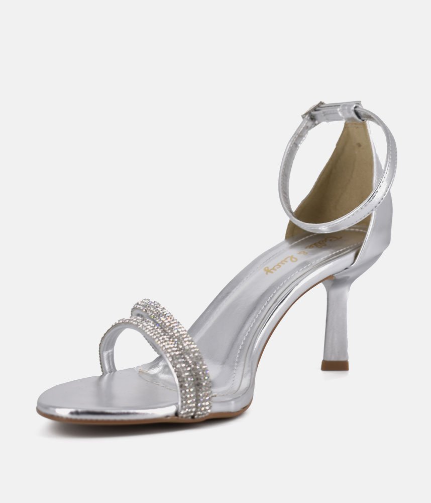 Make an unforgettable entrance in these gorgeous, glamorous heels. Perfect for weddings, parties, date nights, or any event where you want to sparkle! The Silver upper catches the light and adds a luxurious sheen. Featuring two slender, sparkling diamanté straps across the toe, providing a secure fit and an eye-catching focal point. The perfect statement shoe to pair with little black dresses, evening gowns, tailored jumpsuits, or even dress up simple denim.