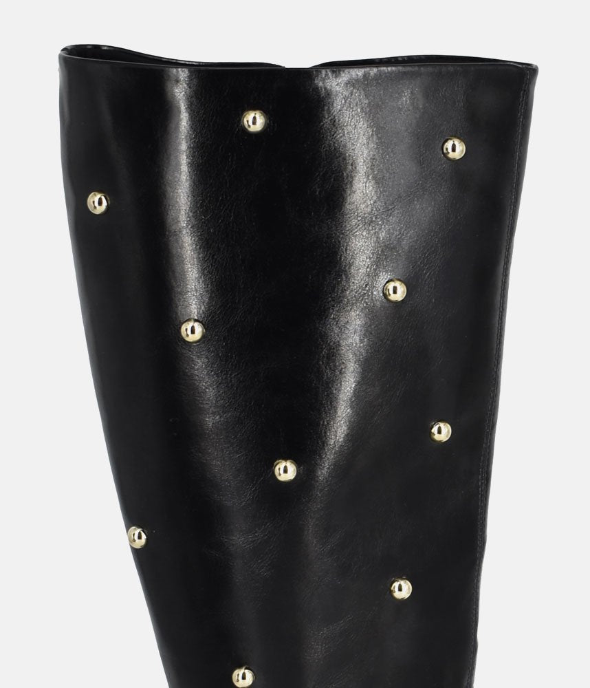 Step into high style and confidence! These gold-studded boots are your new statement piece for the season.