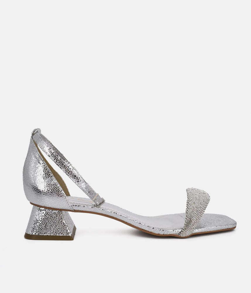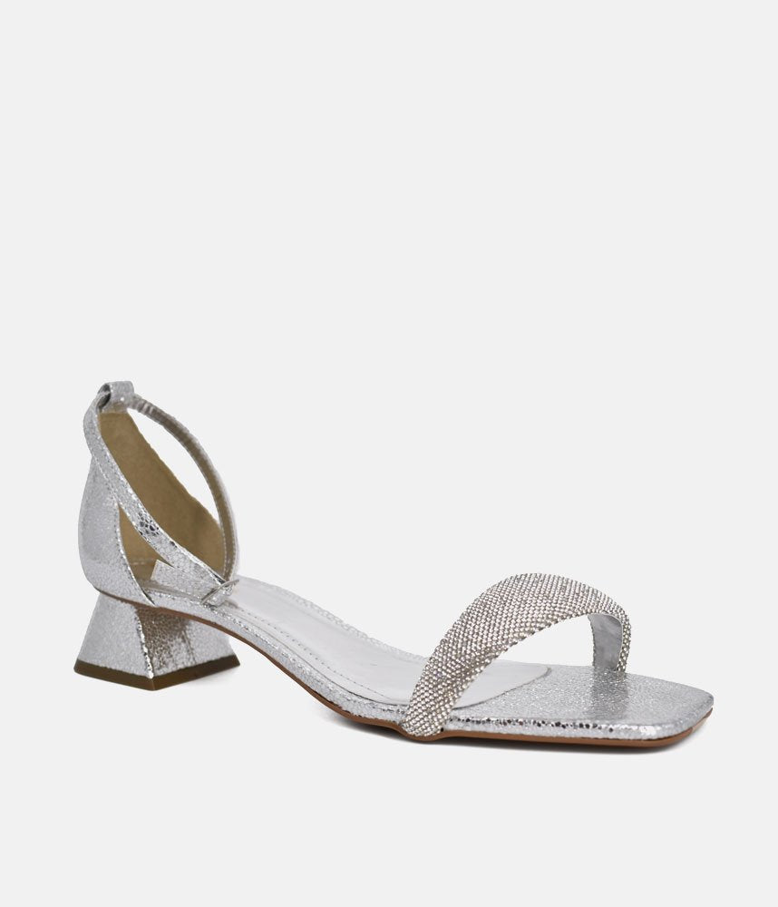 Step into the spotlight with these show-stopping silver sandals! Designed to dazzle, they feature a brilliant rhinestone-encrusted front strap that catches every light, while the shimmering metallic block heel provides both stunning style and comfortable stability. The modern square toe and delicate ankle strap complete this effortlessly glamorous look, perfect for dancing the night away or adding an instant touch of sparkle to any special occasion. Get ready to shine!