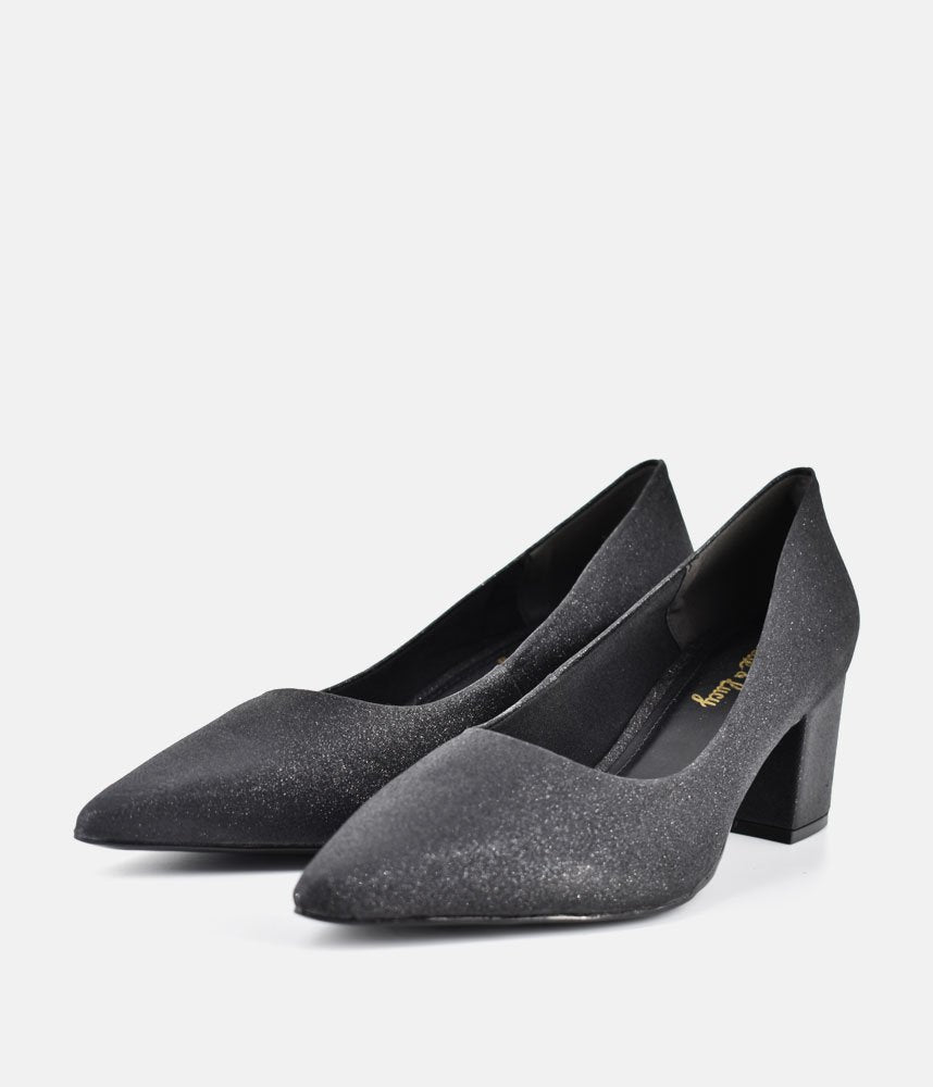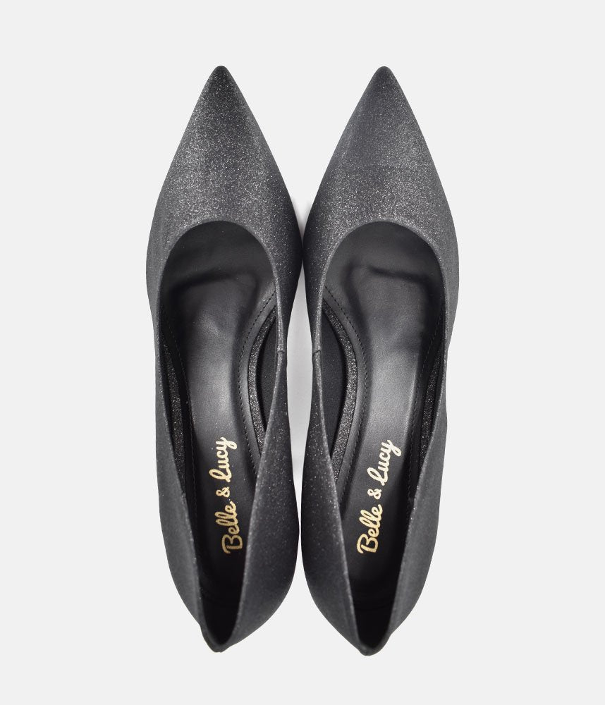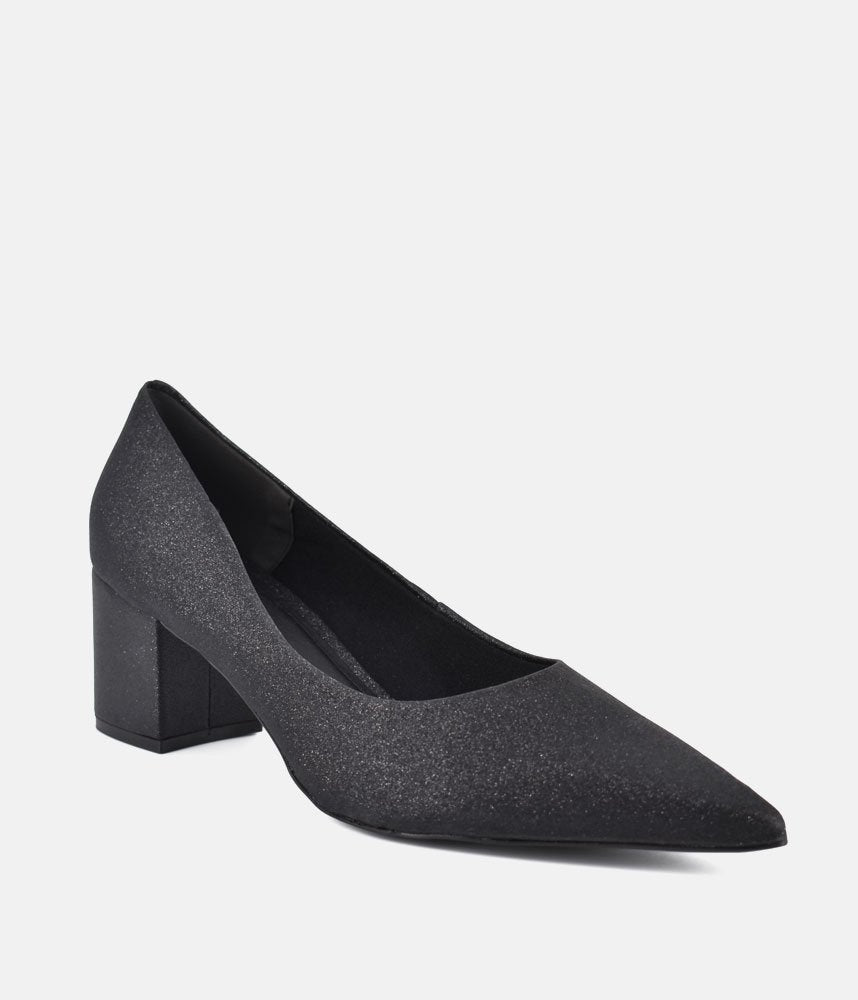 The ultimate versatile pump perfect for the office, evenings, and everything in between. These sophisticated shoes blend timeless style with all-day comfort, making them a true wardrobe essential. Featuring a classic, elegant pointed-toe silhouette that lengthens the leg and ;subtle all-over fine glitter finish, adding a touch of sophisticated glamour without being overpowering. The perfect "go-to" shoe! Easily transitions from polished office wear (paired with tailored trousers or skirts) to evening chic (worn with dresses or jumpsuits).