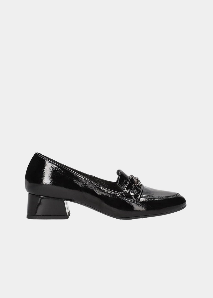 These Block heel Loafer shoes are a versatile addition to Your year-round wardrobe. Featuring a simple silhouette in classic black with decorative link detail. These heels have superb cushioning on the insole and will be a great choice for every day wear.