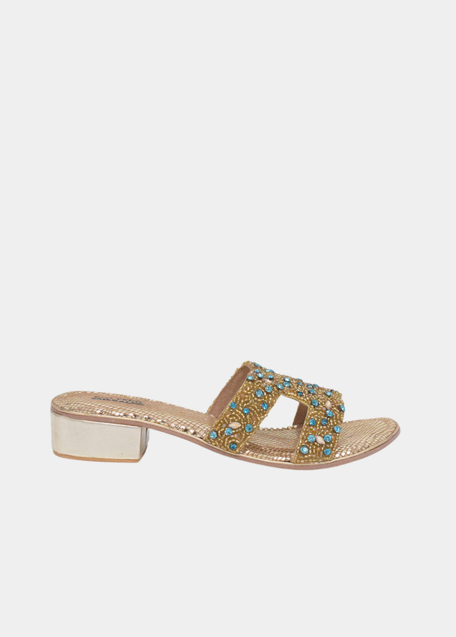The BOTTEGA SMERALDA collections are characterized by high quality that is able to satisfy customers who appreciate the sense of aesthetics and functionality. BOTTEGA SMERALDA uses only the highest quality hand-made accessories that perfectly decorate the shoes and make each product unique. You can go ahead and pair these sandals with a flowy long evening dress, adding delicate gold accessories to enhance the luxurious look.