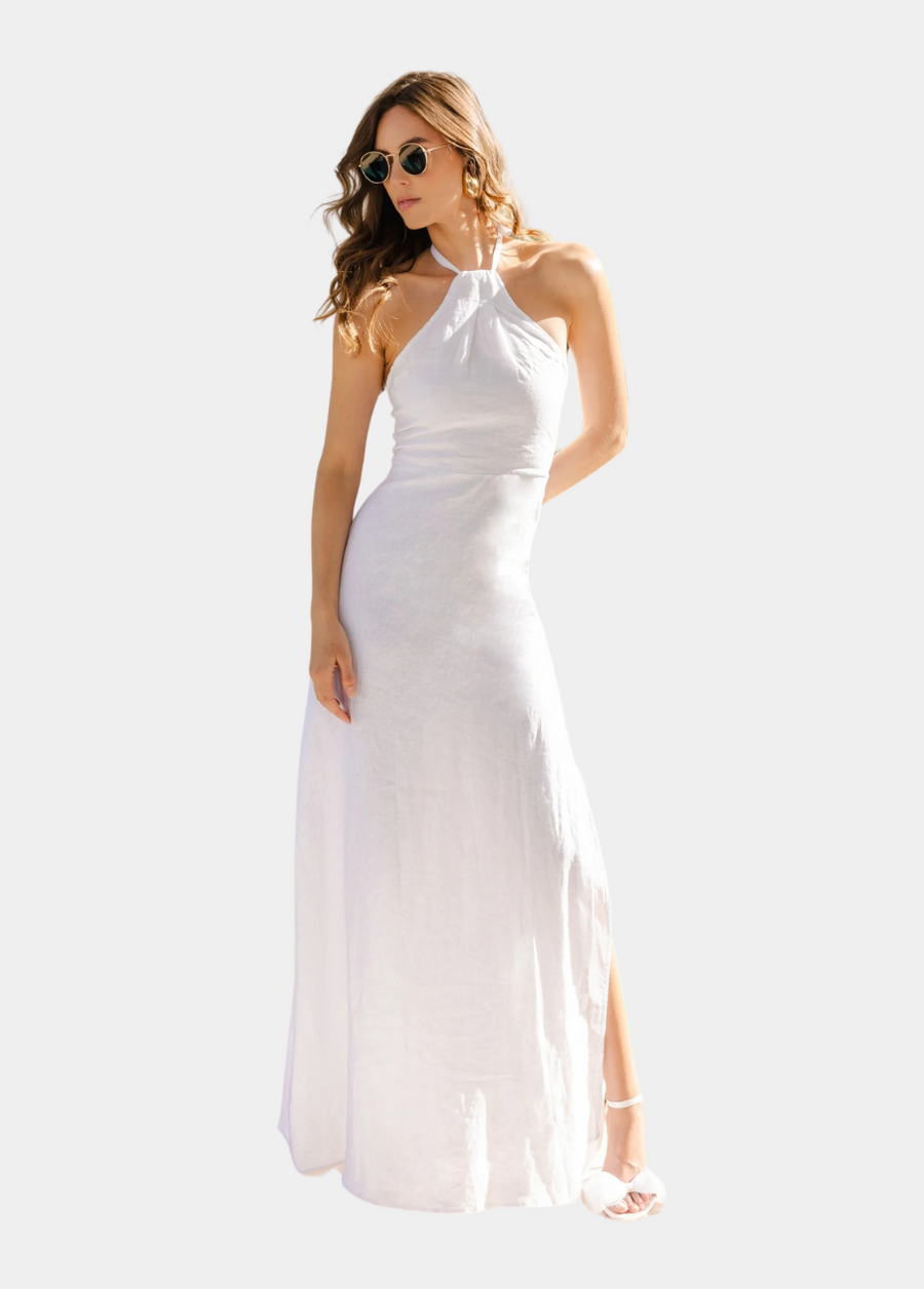 Our Breath of Spring linen maxi dress is your go-to easy dress for the daytime or evening. Featuring a side cutout and flowing linen fabric, this dress will become your wardrobe staple. Zip with top hook and eye closure at the center back.