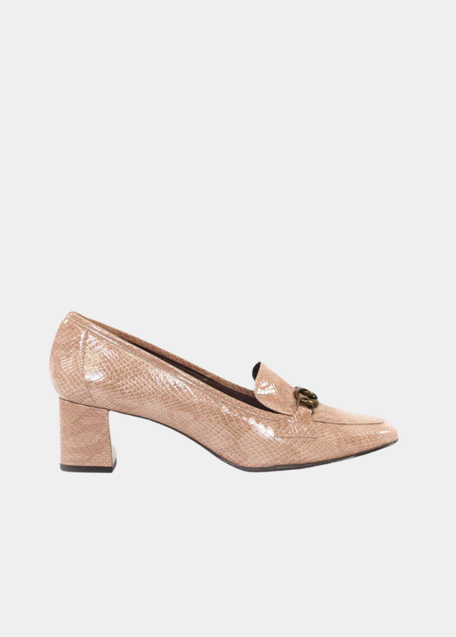 Elevate your smart-casual ensembles with these loafers. A structured loafer, featuring a chain link on the upper and a mid-height block heels. This style offers a stand-out look; Laid back and glam all at once. When you need smart statement shoes, slip on premium leather loafers.