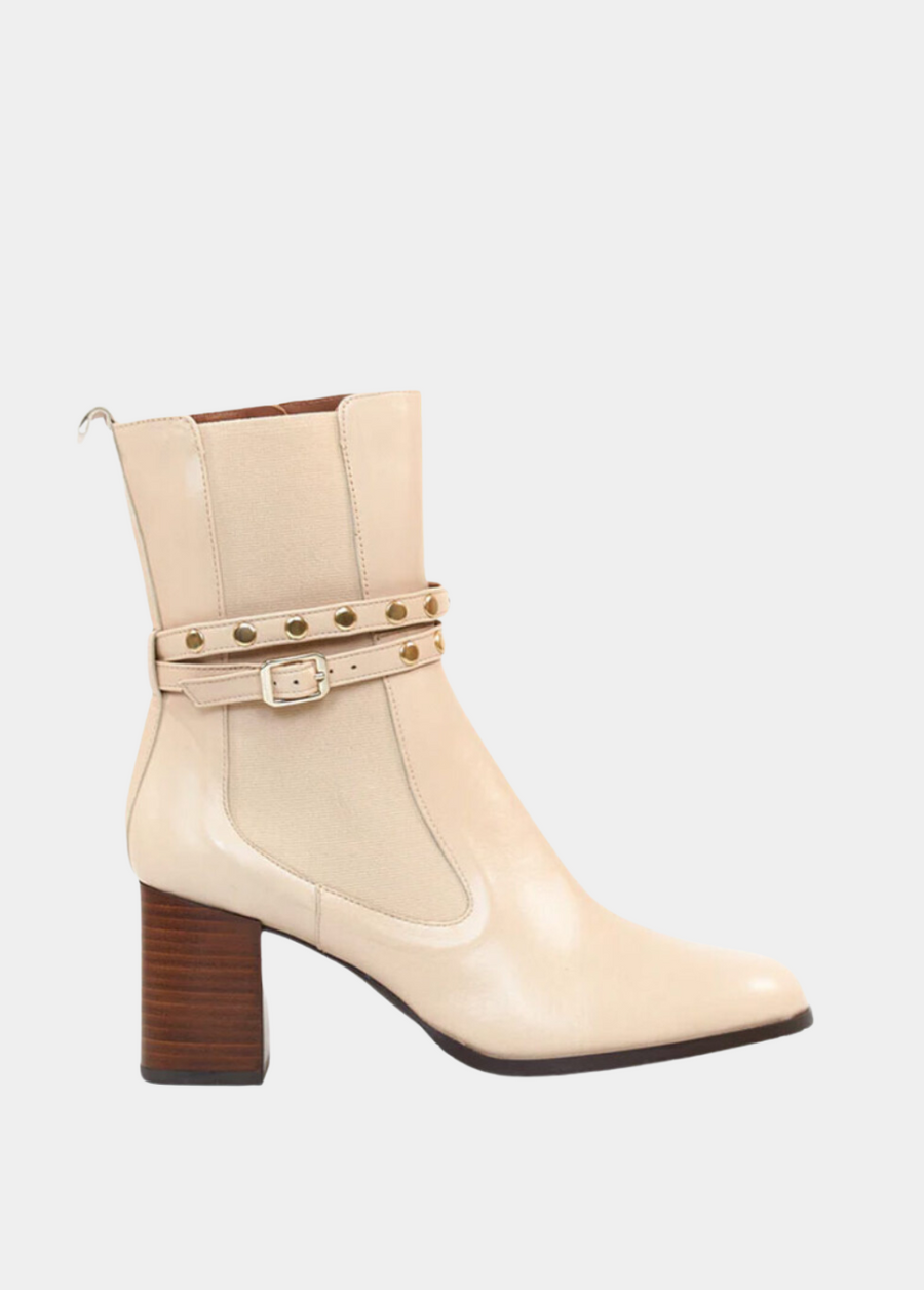 Handcrafted in Spain from a beautiful soft leather – these premium ankle boots offer a classic yet contemporary look. With a refined, almond toe shape and a 3 inch stacked wooden effect heel, these boots feature a leather sock for luxurious comfort and ensures a comfortable step.