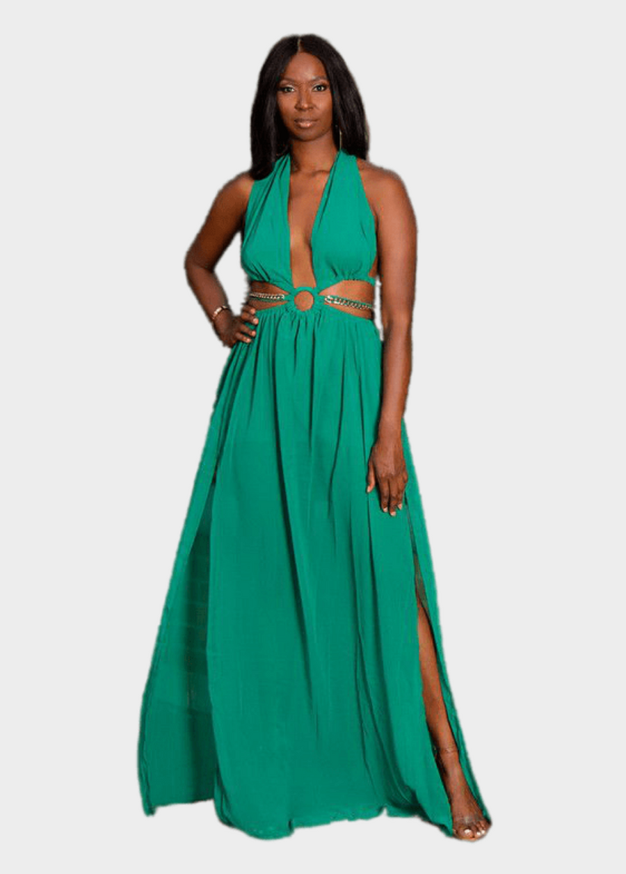 Don't miss out on this beautiful maxi dress! The sheer fabric makes it the perfect dress for Summer walks along the riverfront or beach, and the gold chain detailing adds that extra glam we all love! It's the perfect length for heels or flats, so whether you're grabbing dinner or sightseeing, you'll be the best dressed. (And yes, there were TONS of compliments on this one as were taking pictures!) You won't regret adding this one to the collection!