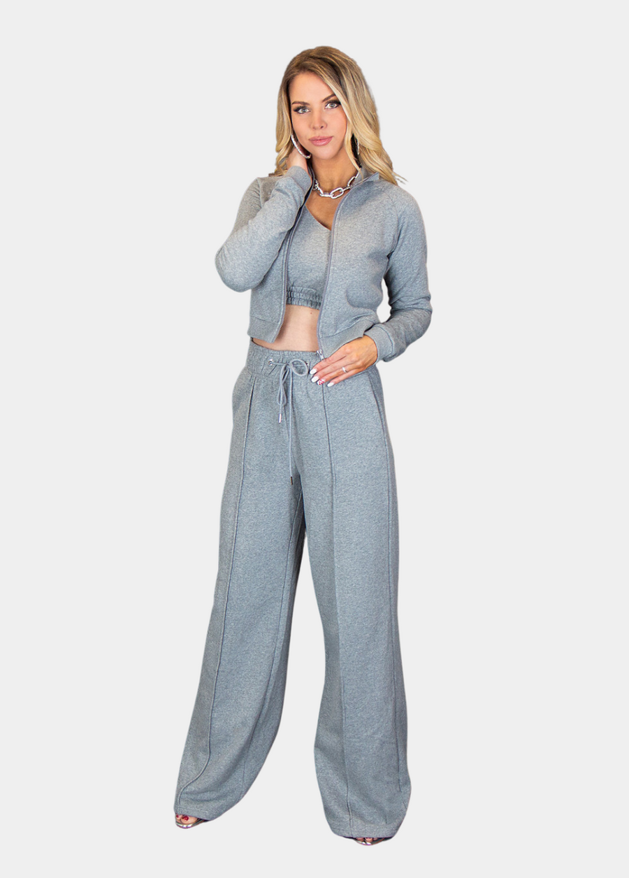 A cute sweat jacket is essential for elevating your most causal out and about looks. Grab the City Vibes Sweat Jacket to do just that! Throw it on with leggings, jeans, and mix and match with other sweats. It also goes perfectly as a complete set with our City Vibes Sweatpants and City Vibes One Shoulder Top. Grab this jacket to complete the look!