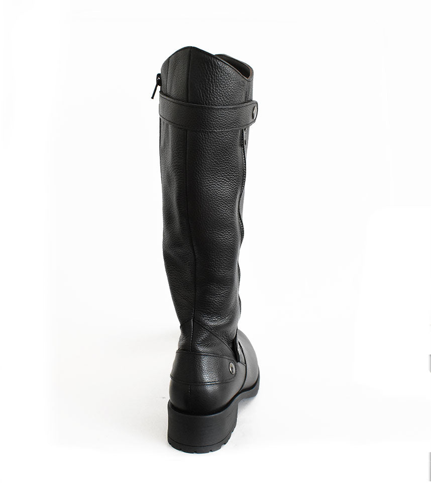 Designed by Cinderella Shoes and Hand Made in Spain, Black Nubuck Leather Boots with Straps and Decorative Zip