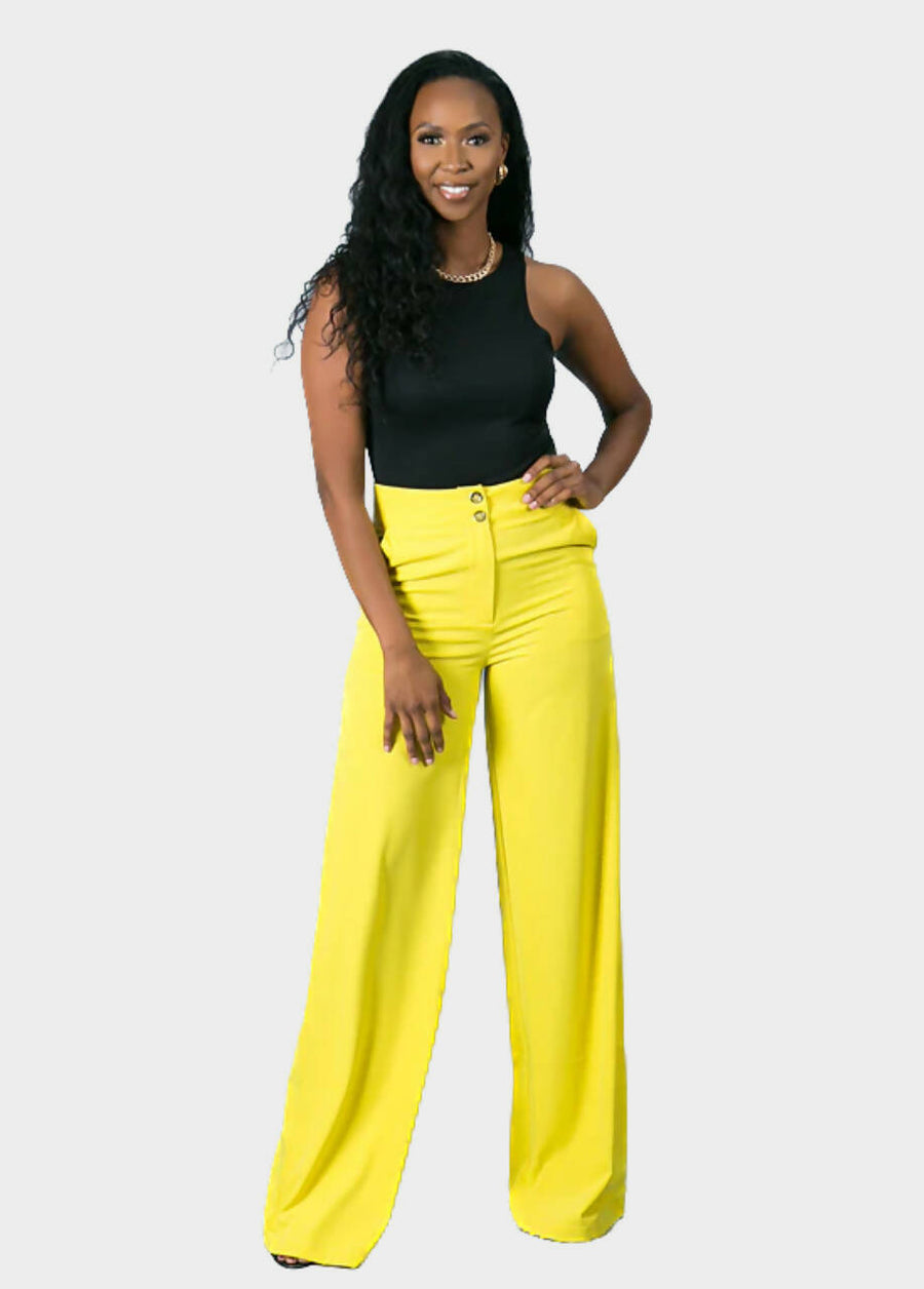 Looking for the perfect dress pant? Give the Double Button Pants a try! These stretchy pants pair perfectly with blouses, crops, and blazers. You'll love how long and fashionable they are! Features a double button and zip fly closure.