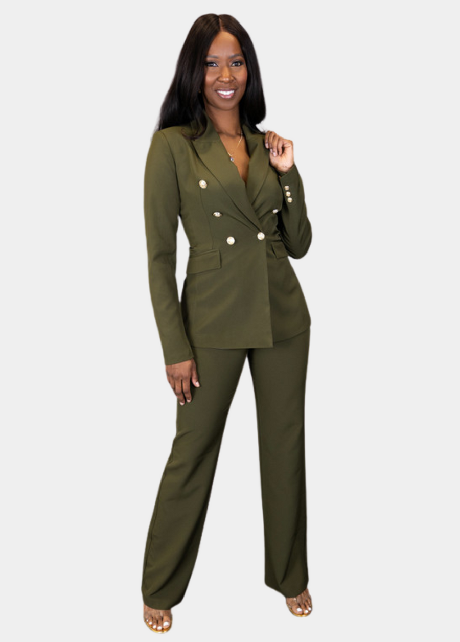 Make an impression in the boardroom in the Executive Blazer! This stylish blazer includes gold button details that add just the right amount of polish to your look! Get ready to command the room when you walk in wearing this blazer. Complete the look with the matching Pursuit Pants!