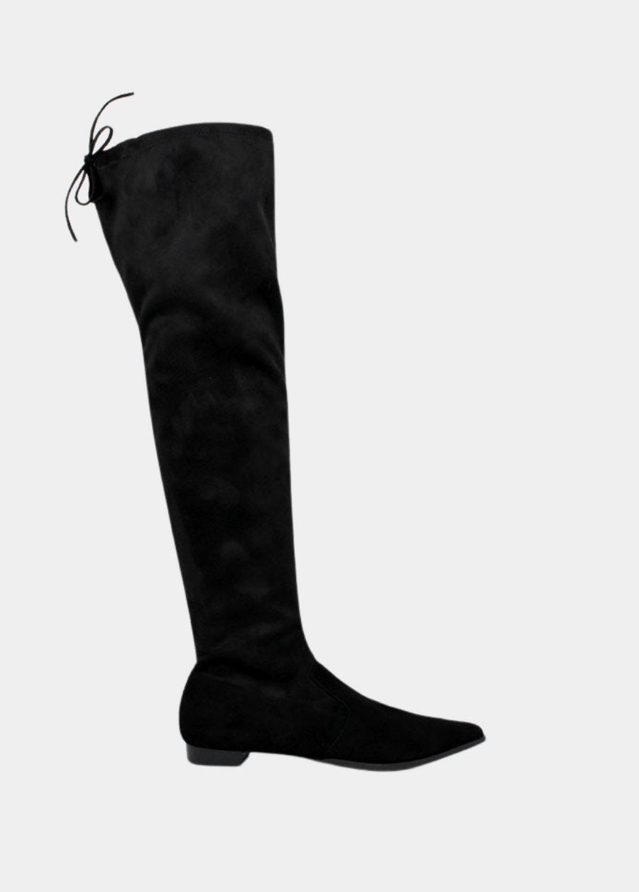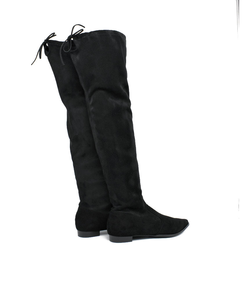 Create a striking silhouette in these Premium Suede over-the-knee boots. Pull-on style, with a soft pointed toe, and tie closure at back. These boots are handmade for Cinderella Shoes in Spain. Warm and chic, these make for a wardrobe staple.
