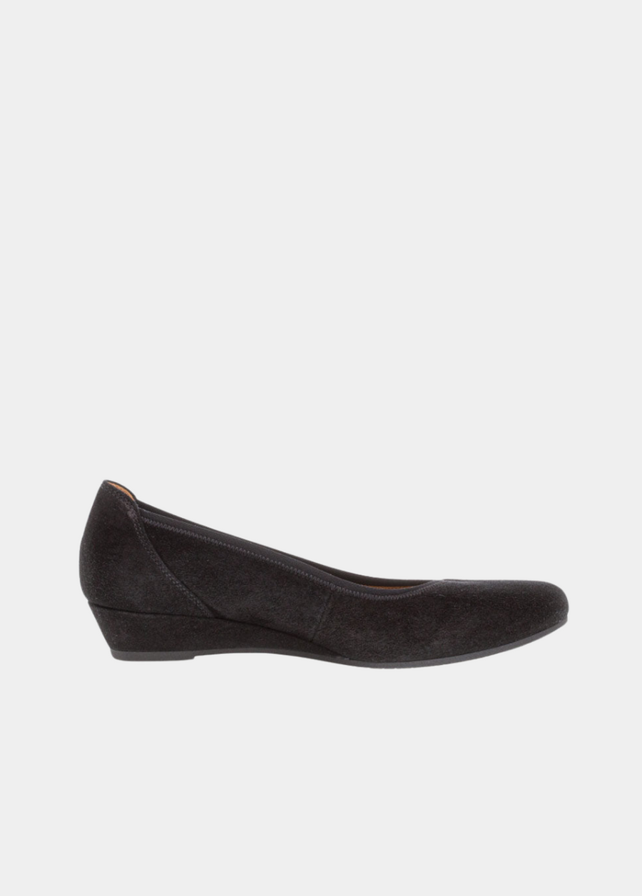 This is a smart casual wedge from Gabor. Perfect to wear for work, nights outs or going out to lunch. It's soft suede upper will compliment so many outfits in your wardrobe. Style with dresses, skirts or wear with trousers for a chic smart casual look. Slip on style including elasticated trim and complete with a cushioned leather insole for maximum comfort and low 1 inch wedge for added height these stunning shoes will see you through the season in style.