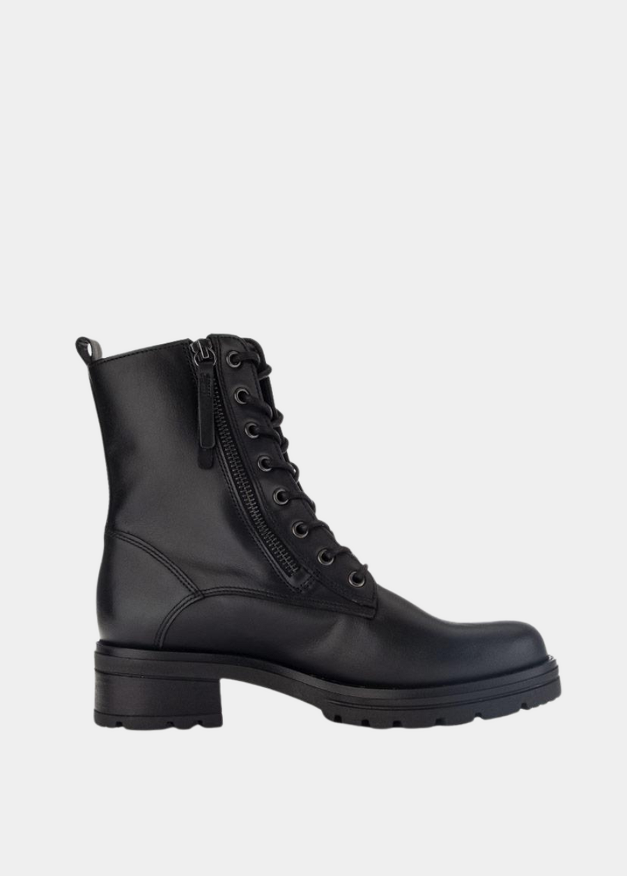 This is a contemporary ankle boot from Gabor with a soft Leather upper. Micro fibre fills the linings of this Combat style boot and provide support and comfort. The durable man-made sole ensures maximum traction and the the side zip ensures easy on and off.