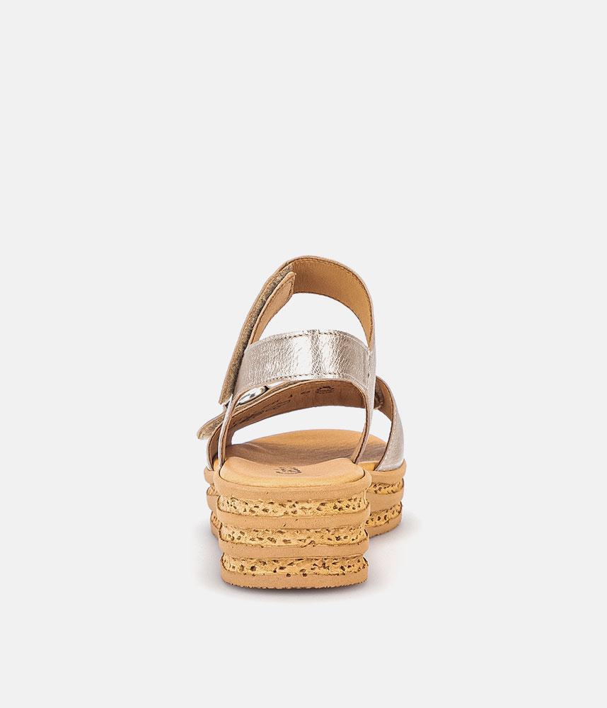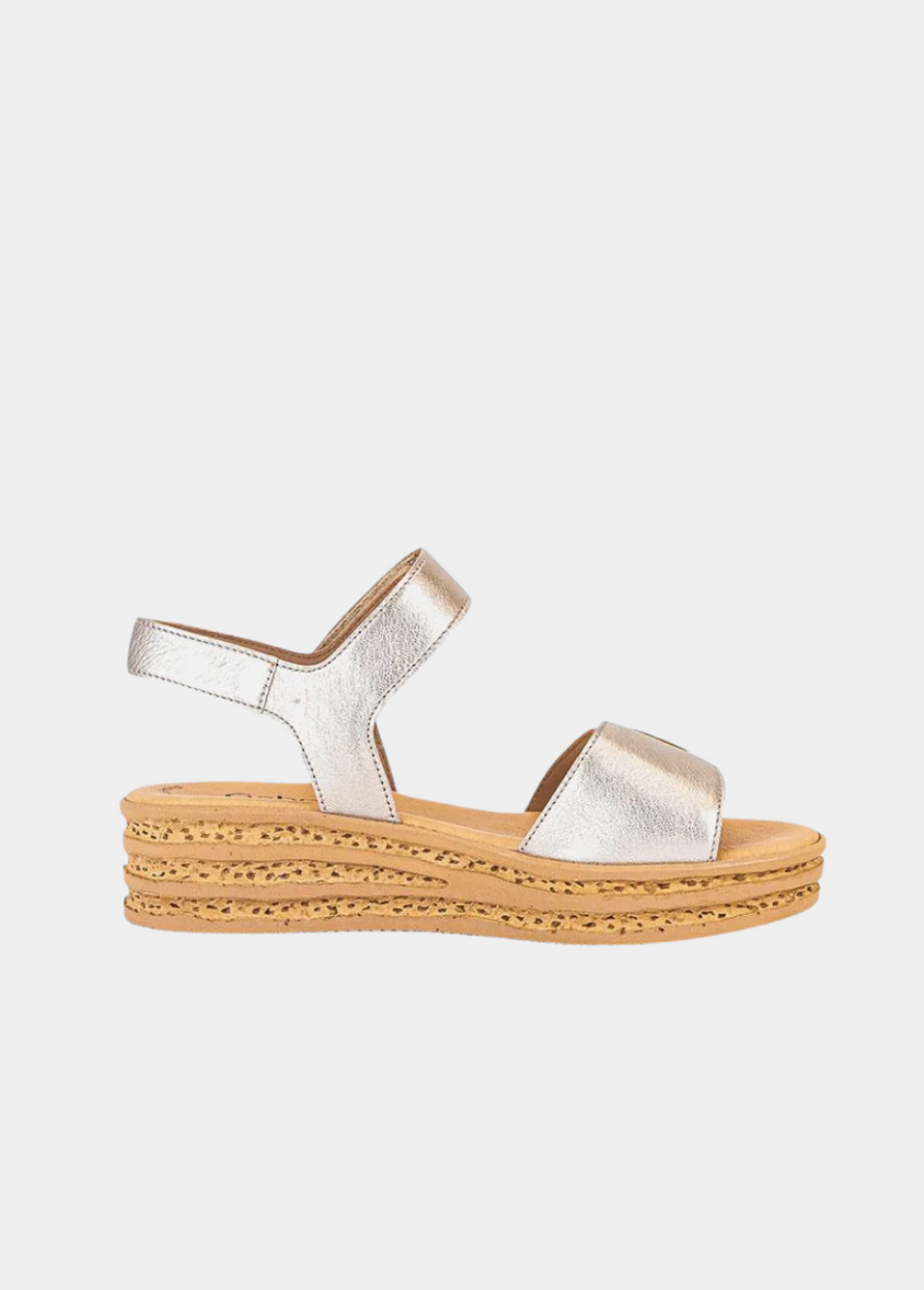 This Sandal from Gabor is a beautiful combination of style and comfort that can be worn for a wide variety of occasions. These comfortable wedge sandals have a patterned wedge sole, a velcro strap for easy on and off and a 6.5 cm wedge heel.