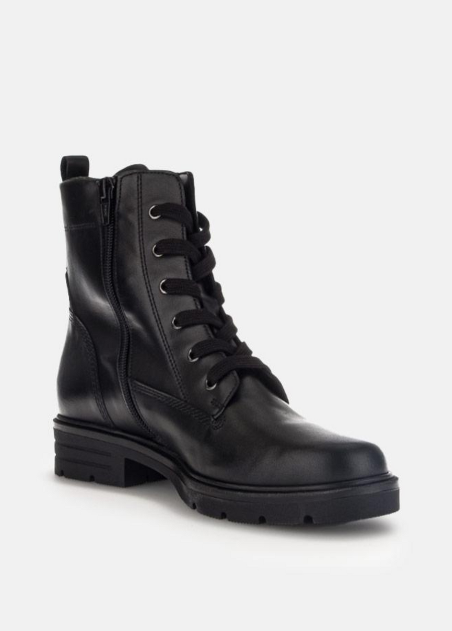 These Gabor Lace Up Ankle Boots are a fashionable style, yet practical for everyday wear. A soft black leather upper sits on a chunky trendy black sole. The side zip and laces makes this style easy to put on and take off while also allowing for an adjustable fit. Gabor's Best Fitting technology feature a broadened insole and widened tread area, delivering an increased step surface for the ball area of the foot.