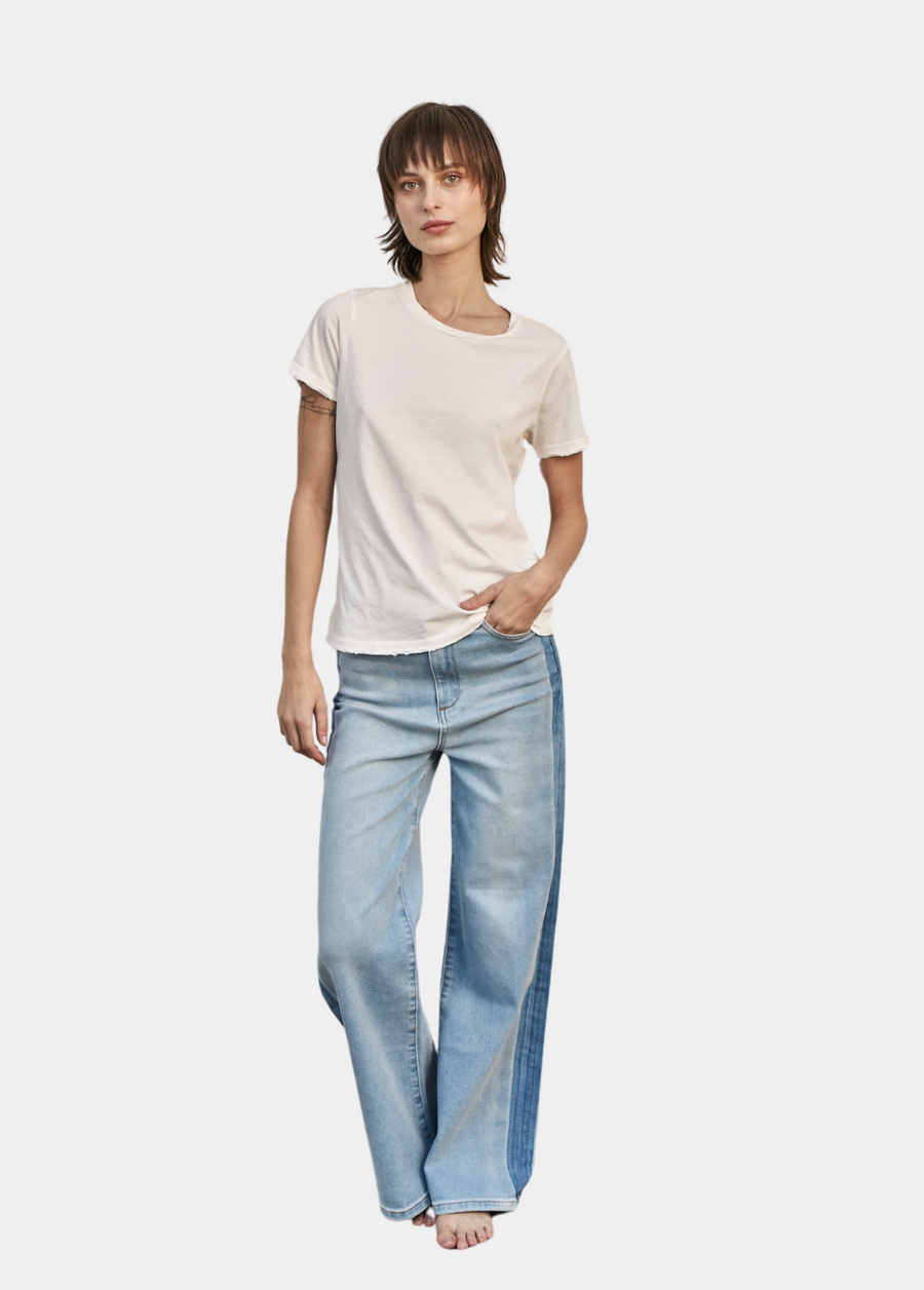Midheaven's 100% Cotton Denim Jean with Medium Wash Tuxedo Stripe.
