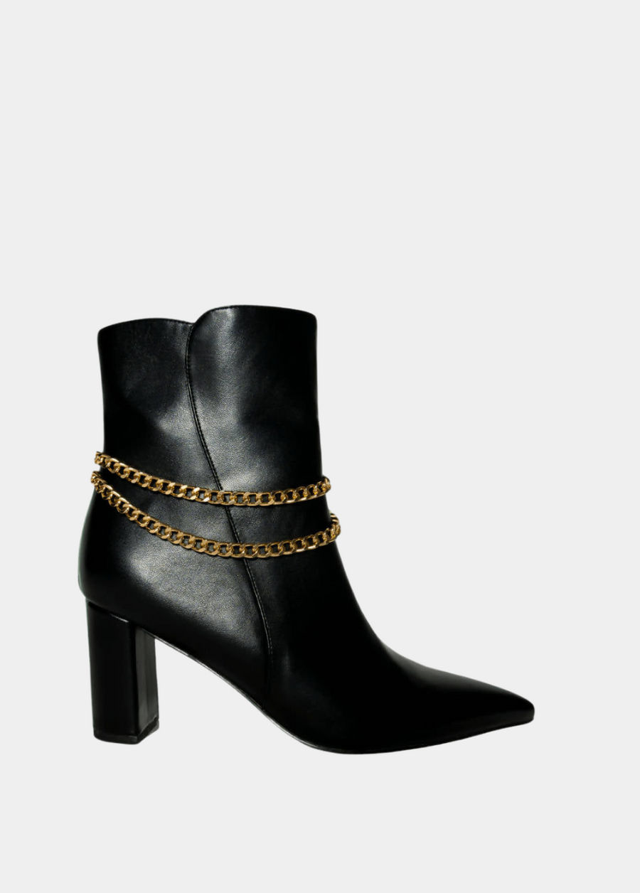 A style icon. A fashion icon. Janet is show-stopping just like her name. She's a slick, bold woman who knows how to make an entrance. With her glossed vegan leather and gold-tone chain detail, the fit and flare shape shows off the perfect silhouette on any outfit. The bold, minimalist design adds a unique touch to any look. She's the ideal shoe to add an element of sophistication and luxury to any outfit while providing comfort with every step. With Janet, you'll be stepping out in style this season.