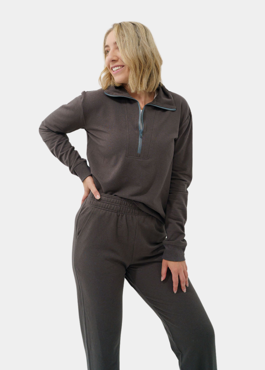 The A classic style every tall girl needs in her wardrobe. This relaxed half-zip sweatshirt was designed with a tall frame in mind. It has a slight high/low hemline which is ideal for tucking and extra-long sleeves. Pair with the relaxed leg sweatpants for tall women, or sweat shorts for an effortless look. Watch an in-depth video on this item here.