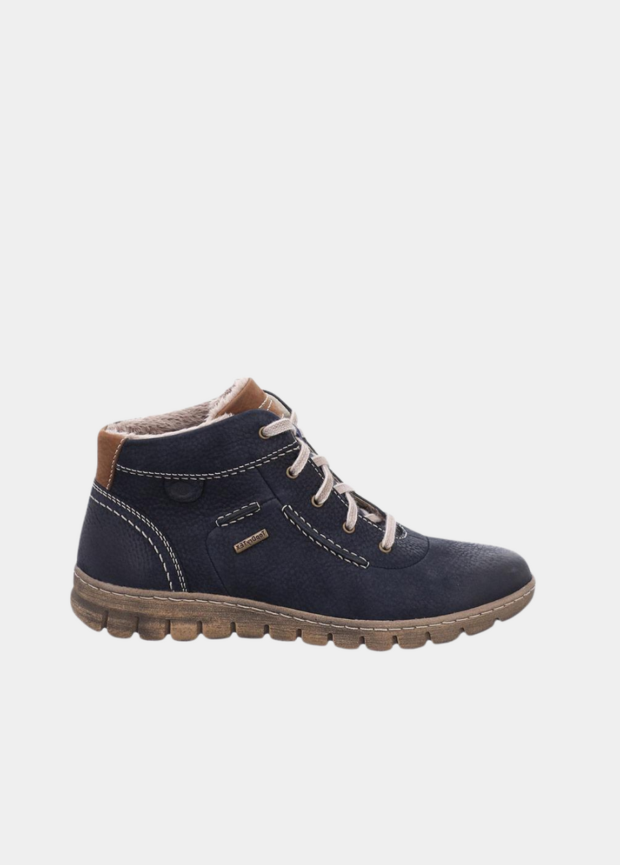 These Josef Seibel ankle boots are waterproof making them a fantastic choice for all weather types. With a light PU sole, you’re able to walk long distance with ease, as well as gaining maximum grip. Featuring a fur trim and contrasting stitching, and lace fastening, where the boots can be secured to your preference. A removable insole is also a feature of this boot.