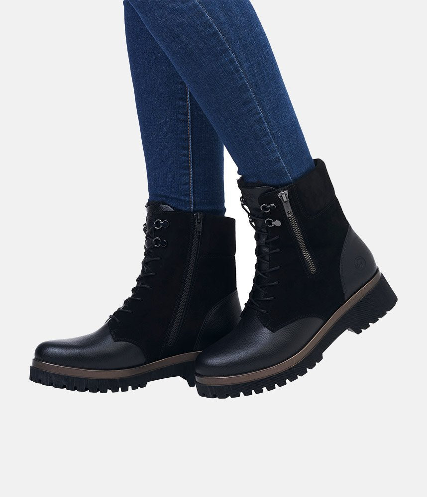 A gorgeous new style this season from Remonte. The combination of leather and suede on the upper gives a fab finish along with the chunky cleated sole. The super soft velvety velour lining and removable insole are perfect for keeping feet warm during the winter months.