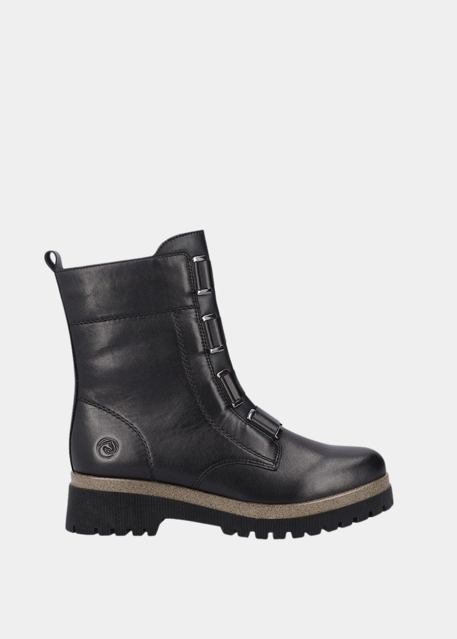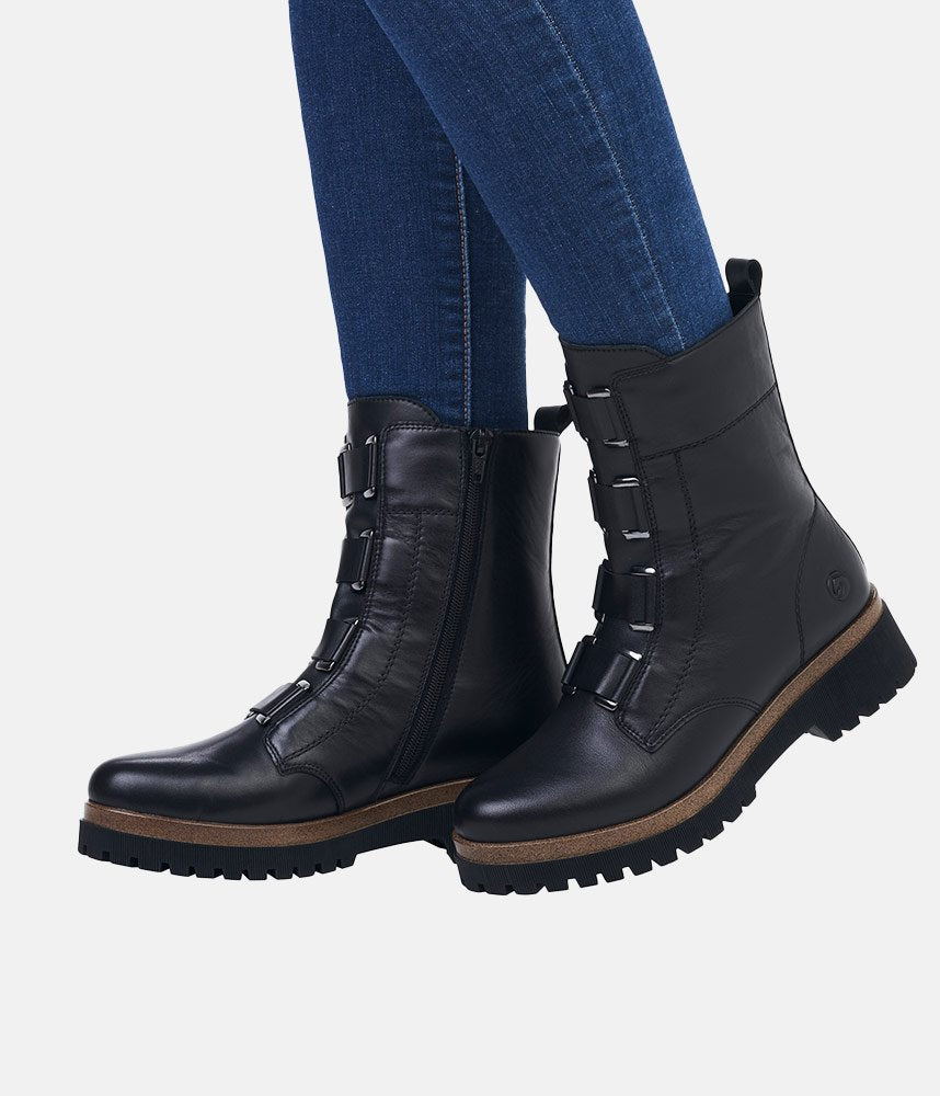 A fabulous New style ankle boot from Remonte this season. The Buckle detailing give these boots a fab finish along with the chunky cleated sole. The super soft velvety velour lining and removable insole are perfect for keeping feet warm during the colder months.