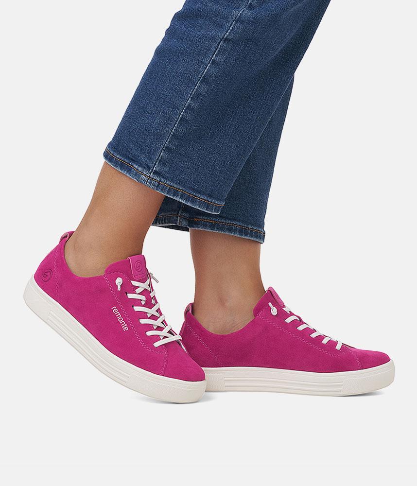 This is a Fashionable versatile trainer from Remonte with a leather upper, featuring contrasting Silver trim and no tie laces for easy on and off. The padded soft insole ensures a comfortable fit.