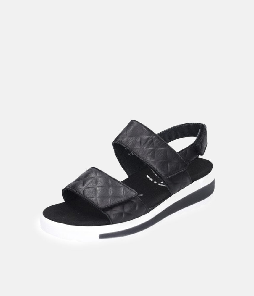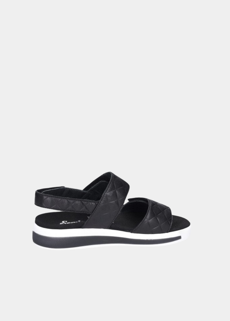 A Gorgeous Black Quilted Wedge from Semler sitting atop a contrasting combi wedge. Fashionable and feminine, this is a super comfortable style featuring a removeable insole. This Wedge sandal will be sure to provide a very comfortable fit and the extra-light air cushion sole is fashionably emphasized and is gentle on the joints and non-slip.
