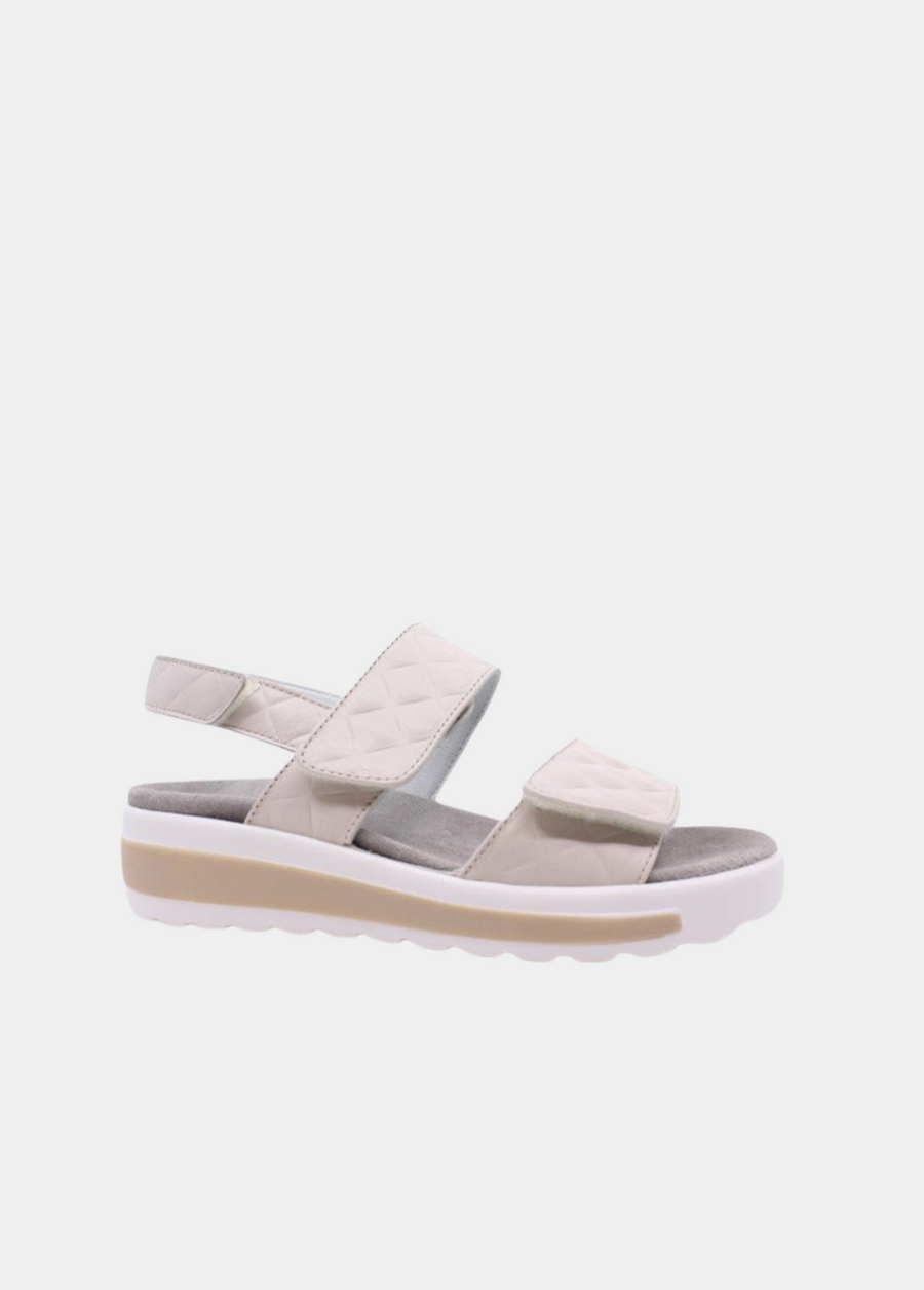 A Gorgeous Cream Quilted Wedge from Semler sitting atop a contrasting White and Beige combi wedge. Fashionable and feminine, this is a super comfortable style featuring a removeable insole. This Wedge sandal will be sure to provide a very comfortable fit and the extra-light air cushion sole is fashionably emphasized and is gentle on the joints and non-slip.