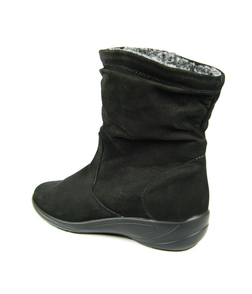 A fashionable Ankle Boot from Semler handmade in a beautiful Black Suede. The side zip ensures easy on and off and as well as looking stylish these are very comfortable to wear. You'll want to live in these with their comfy soft lining and the removable footbed is particularly comfortable. The rubber sole with a slight wedge heel is slightly profiled and slip-resistant.
