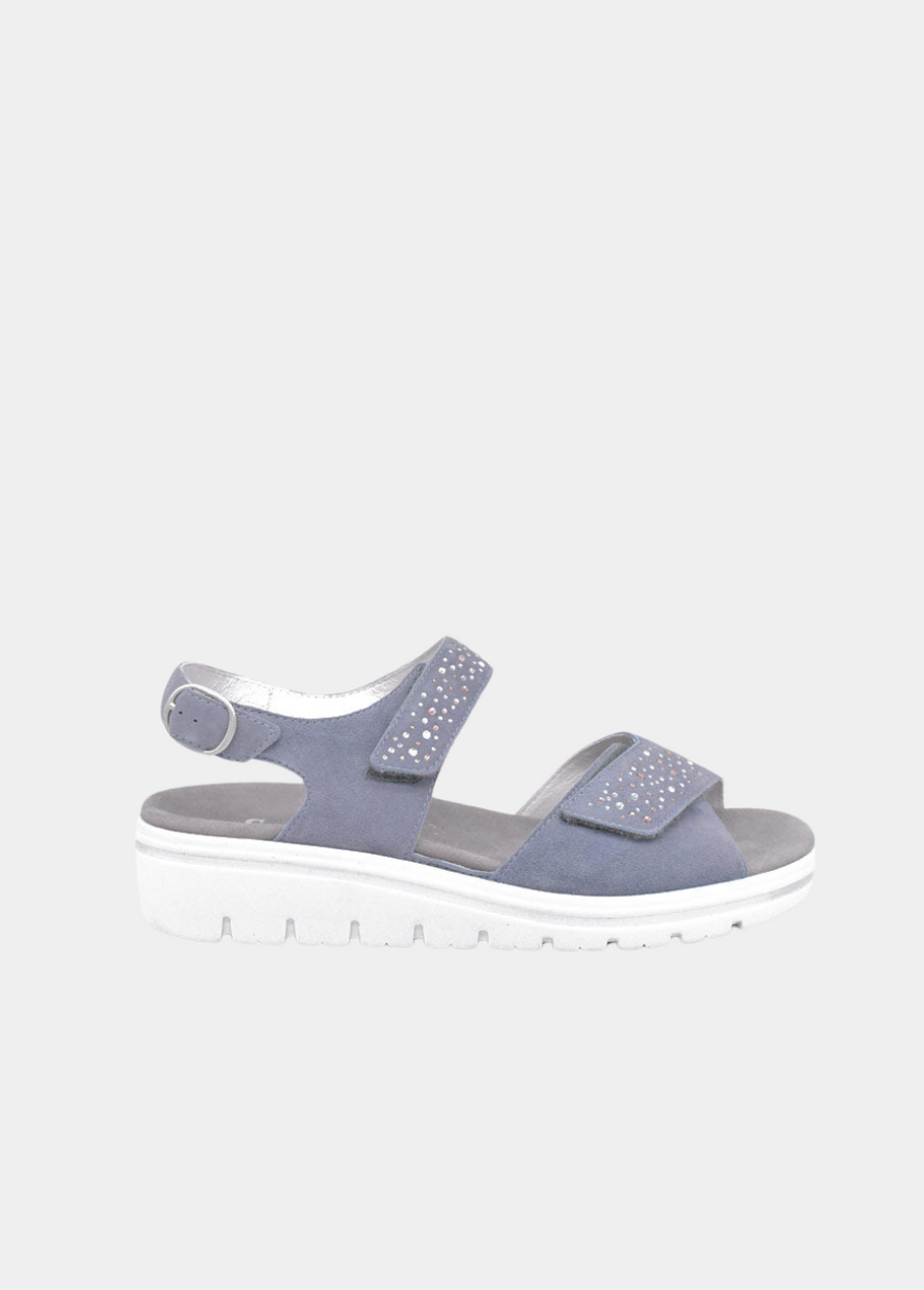 These are a Super comfortable and Stylish sandal from Semler with a wedge heel. A great choice with it's Beautiful Soft Suede leather upper with Diamante detailing on the straps. This style has two velcro straps which means the width is adjustable. The insole can be removed if necessary.