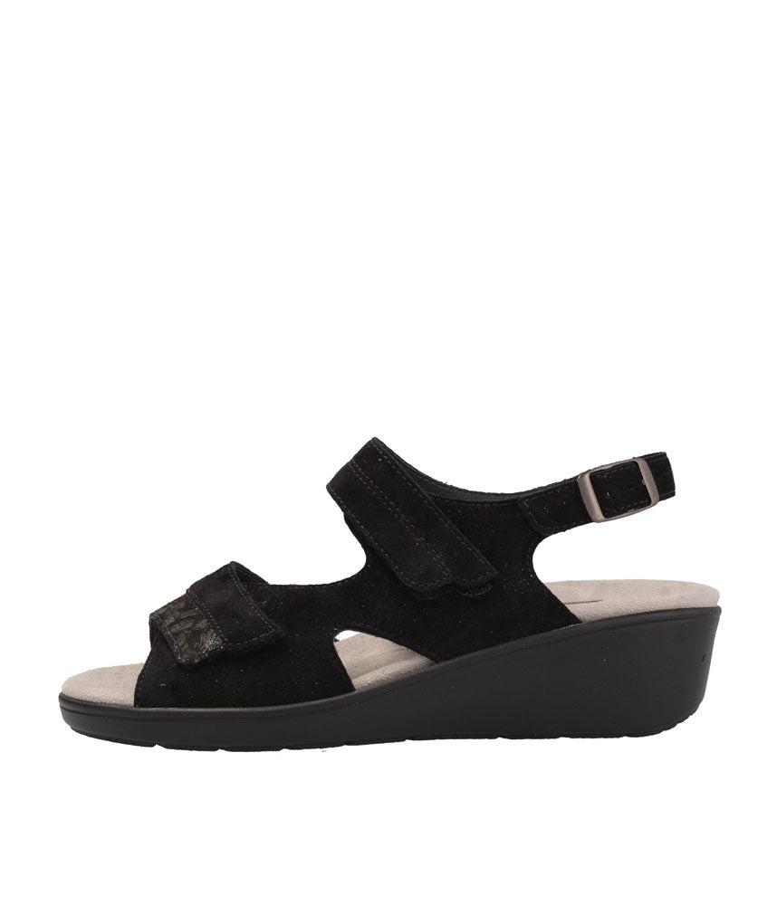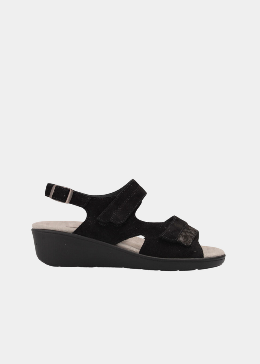 These are a Super comfortable and Stylish sandal from Semler with a wedge heel. A great choice with it's Beautiful Soft Suede leather upper. This style has two velcro straps which means the width is adjustable. The insole can be removed if necessary.
