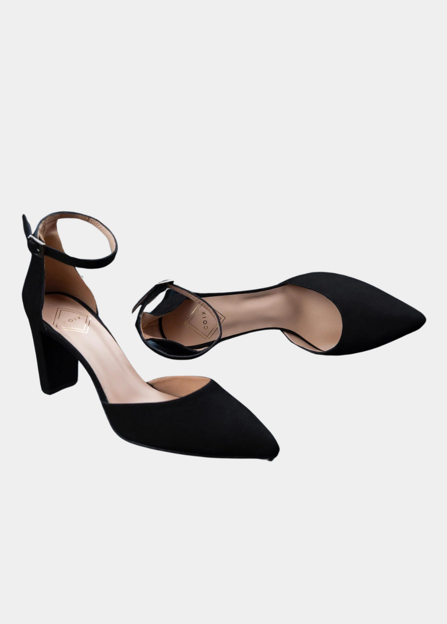 The Seville in noire (black) suede elegantly wraps around the ankle, while side cutouts reveal the foot in all its beauty. Understatedly chic and versatile in equal measure with a flattering pointed toe and a mid-height block heel, then lined with rose-beige leather for a comfortable fit. Style them with a pencil skirt for the office or with a fluid dress for an evening occasion. Available in black and dark grey suede.