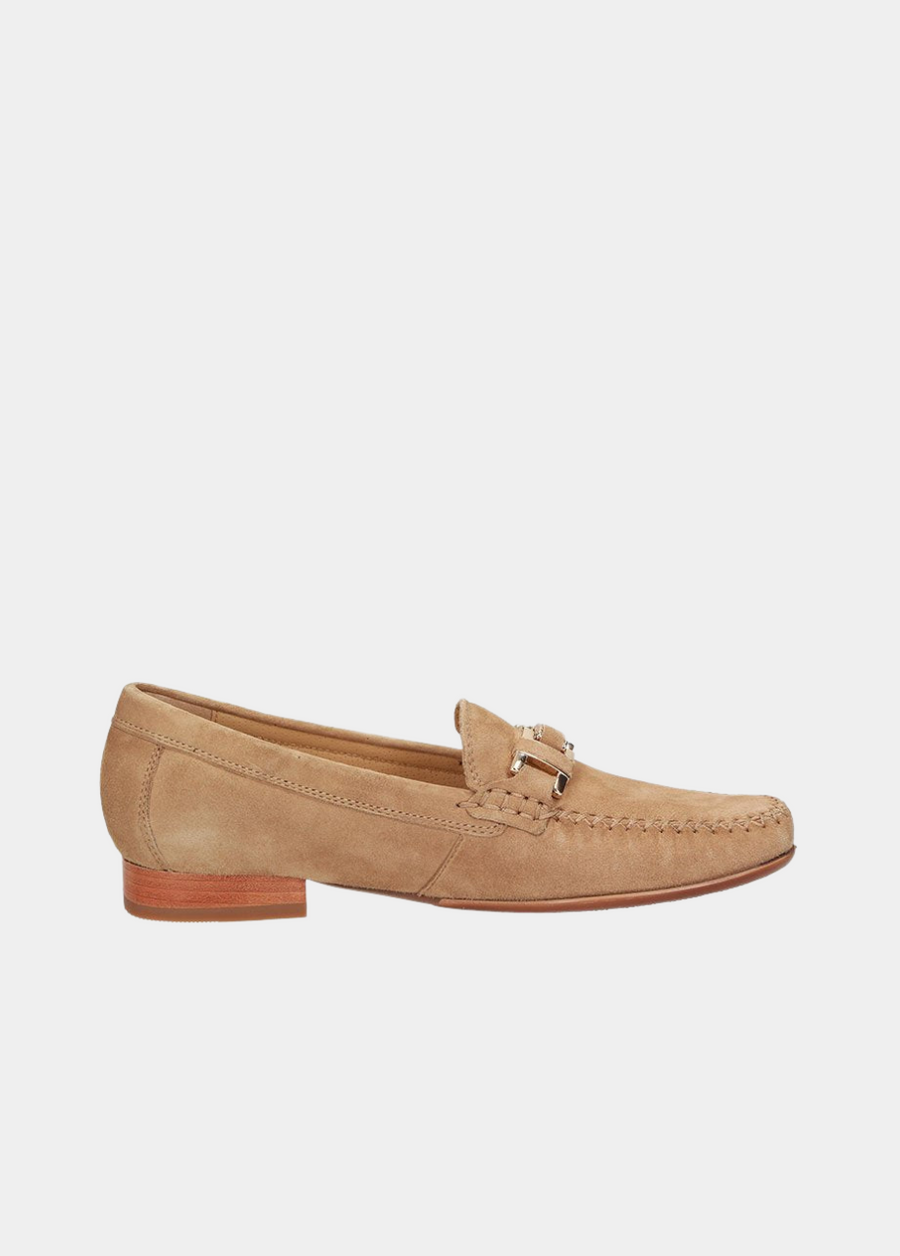 This is a Classic Timeless slip on shoe from Sioux. Made of fine suede, this style offers a perfect fit and timeless elegance with an eye-catching metal/leather trim. Leather-lined with a soft padded full-length leather insole and a small square heel.