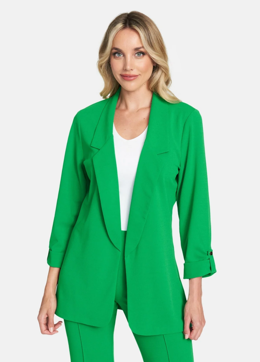 Say goodbye to stiff & heavy blazers! A softly tailored open blazer with rolled up sleeves, made from a lightweight fabric. The Anabella is perfect for sprucing up any outfit. Pair it with the Tall Anabella Flare Pants for a coordinated look!