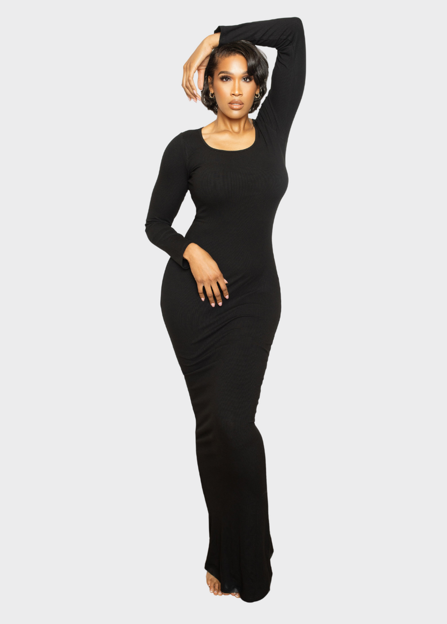 This maxi is a simple stunner! Features a scooped neckline with long fitted sleeves and a body conforming fit. From girls night out, a fancy brunch to date night, this dress will be a wardrobe winner. Pair with white sneakers for a trendy street look we are loving. PERFECTION.