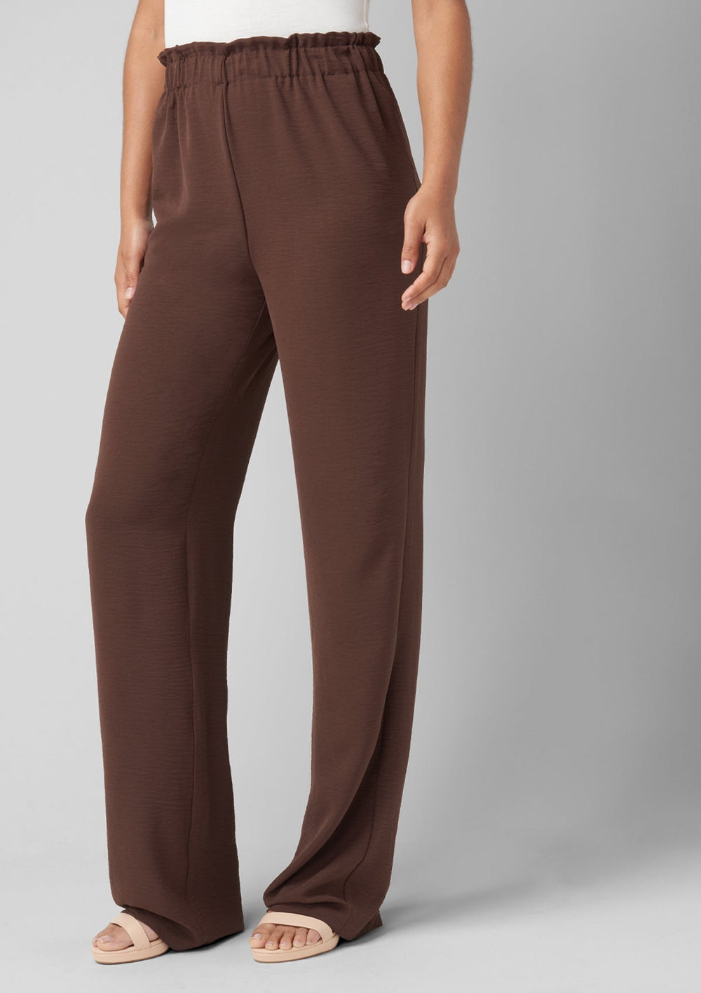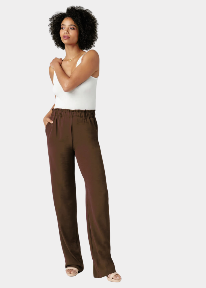 The Brooke pants feature a wide leg silhouette with a scrunch elastic waistband (pull-on) and front pockets, designed to keep you comfortable and stylish no matter the occasion. Crafted from a lightweight airflow material, these pants are perfect for warm weather. The wide leg design provides a sleek and sophisticated look, while the scrunch elastic waist ensures a comfortable and secure fit.