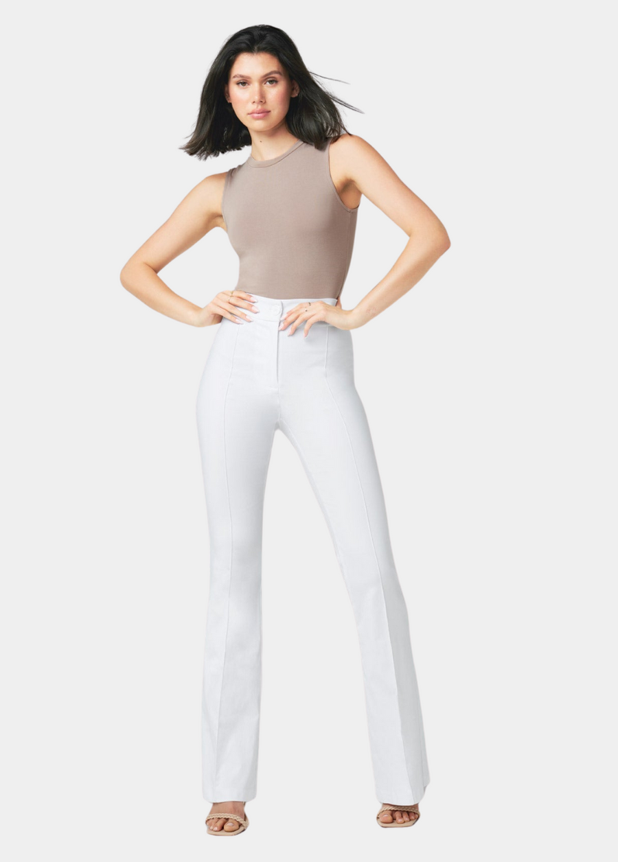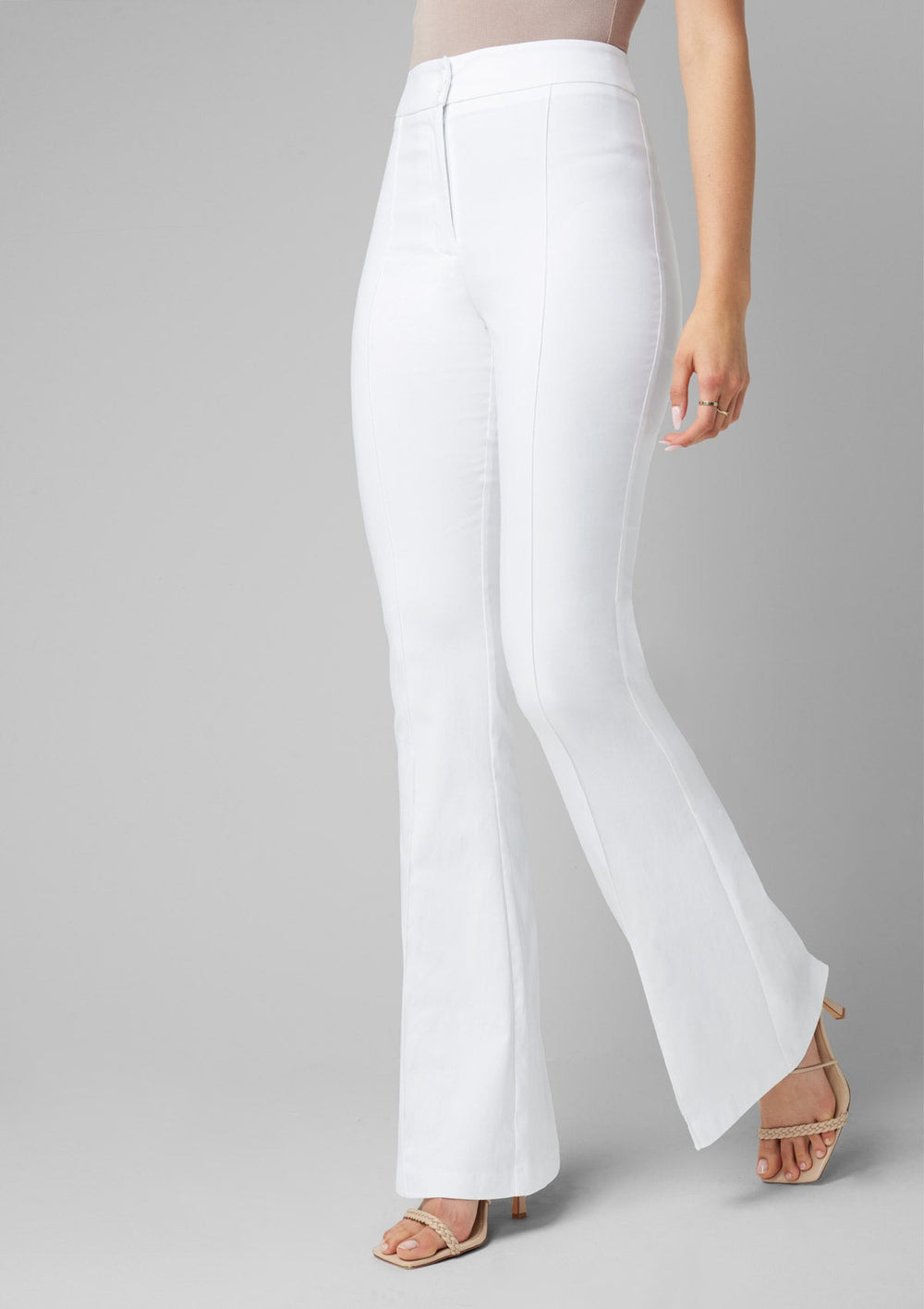 For added style, this tall pant features a wide flare leg and a subtle full front pin tuck detail. This dressy pant is designed to support and flatter your waistline and hips while keeping its shape.