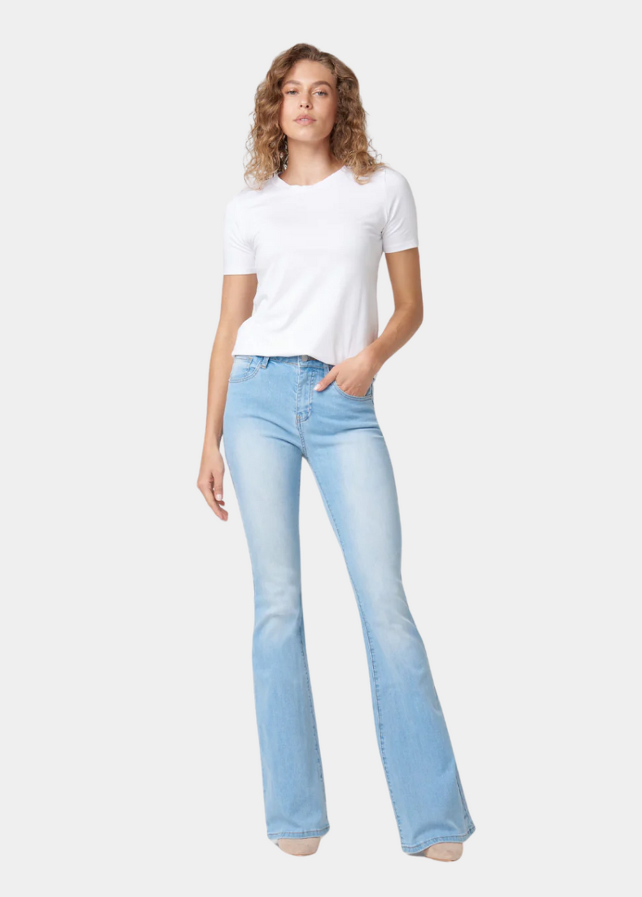 Rock a figure-flattering silhouette in these shapely high-rise jeans with perfectly flared hems. The Riley gives a fun '70s-inspired vibe that's right on trend.