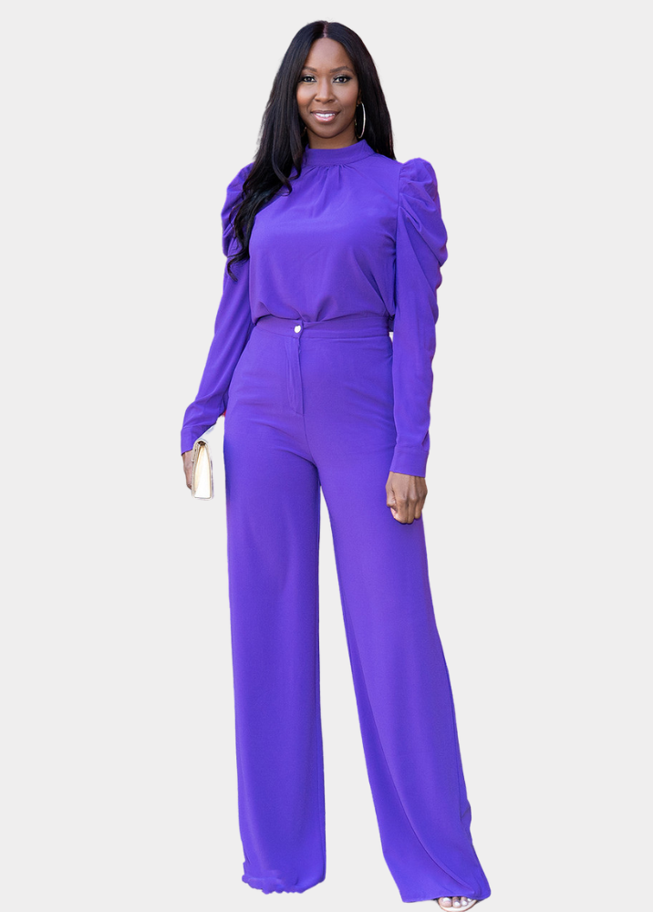 The Serena pant set, is a captivating blend of girlish charm and sophistication, tailored especially for our tall queens. With puff sleeves adding a touch of drama and flair, this set effortlessly balances playful femininity with timeless style. Designed with long sleeves and inseams to complement your tall stature, the pants boast an amazing flow, creating a mesmerizing silhouette with every step you take.