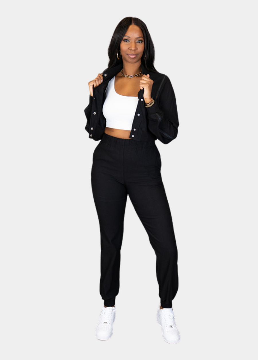 Stay ready for anything in this stylish 2-piece jogger set! The jacket features four zippers for an edgy twist, and the joggers offer a cute, flattering fit. Crafted from stretchy and sturdy fabric, this set ensures comfort and style merge seamlessly. Elevate your casual game and fashionably stand tall, effortlessly.