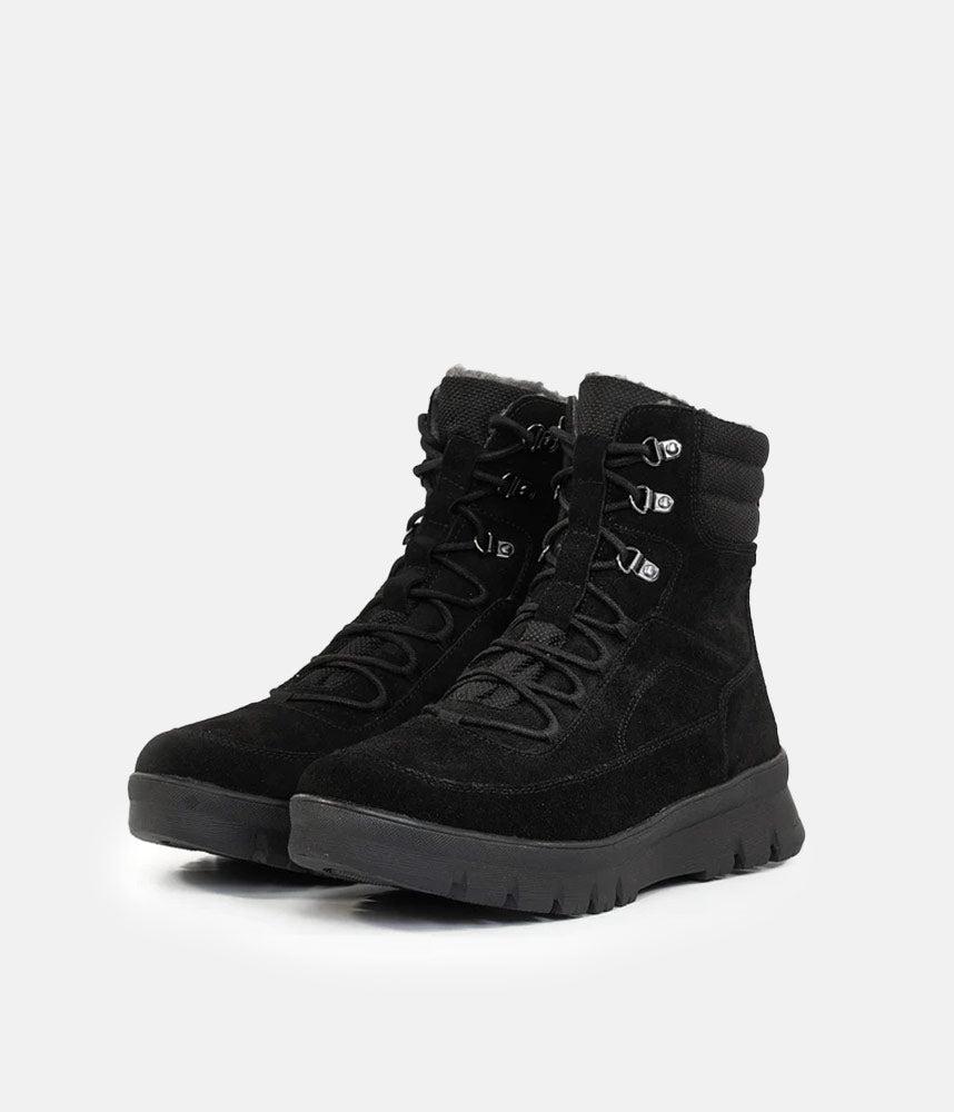 A good looking and practical ladies Winter Ankle boot from Tamaris, featuring warm teddy lining and water-resistant DuoTex-coating. The lacing and metal eyelets offer a super finish and a handy side zip allows for quick and easy on and off. Lined with super soft lambswool, complete with a cushioned removable insole and nonslip rubber outsole.